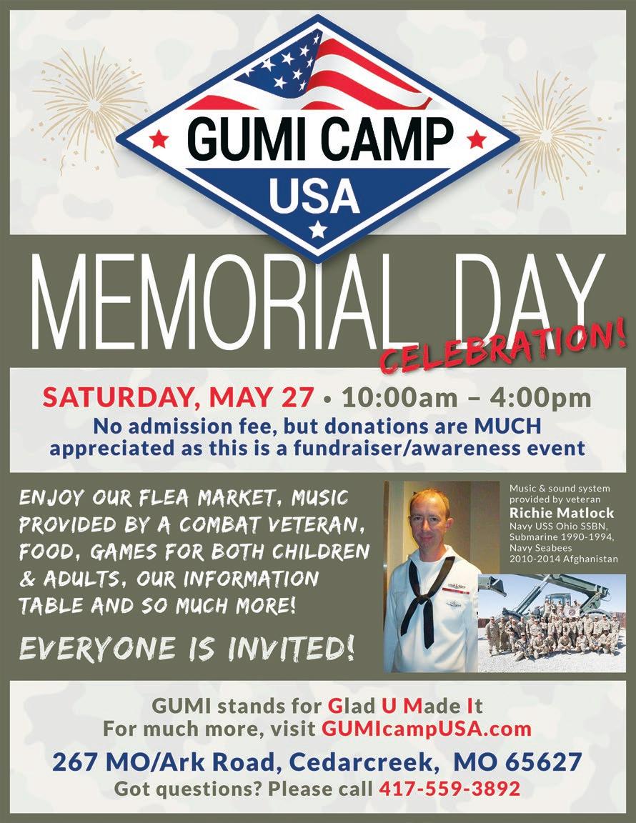 IF YOU ARE A MILITARY VETERAN in need of a place to live, please call us and we’ll try to meet your needs. GUMI CAMP USA 417-559-3892