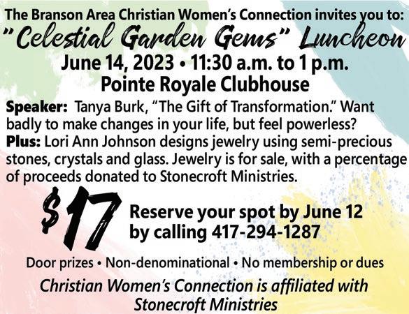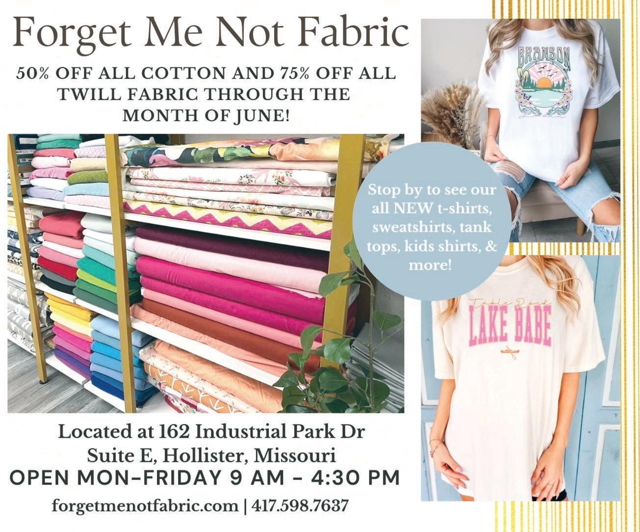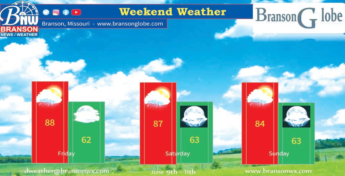 DEADLINE FOR FRIDAY’S PAPER: Wednesdays @ 10 a.m. GET YOUR ALWAYS-FREE BRANSON GLOBE DELIVERED TO YOUR EMAIL INBOX! Go to www.bransonglobe.com and subscribe to our site today... then watch for your paper on Thursday. info@bransonglobe.com Newspaper, LLC 56 • JUNE 9, 2023 bransonglobe.com