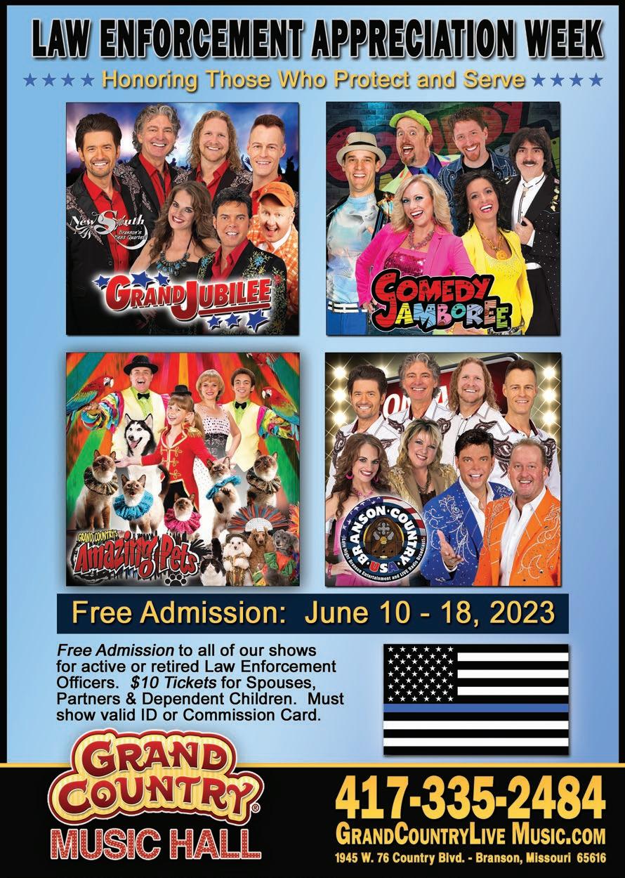 Check out their website at www.godandcountrytheatre. com or call 417-334-6806 for tickets and information. The theatre is located at 1840 West 76 Country Boulevard.