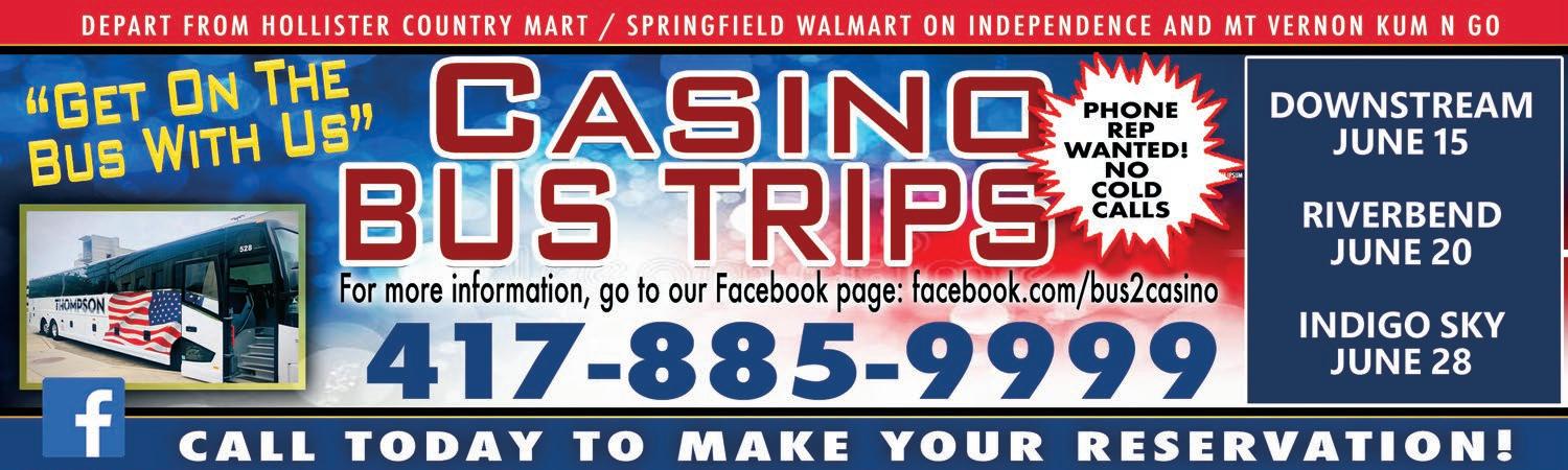 PHONE REPS WANTED – No cold calls. $$$. Flexible hours. Casino Bus Trips 417-335-4466 or 417-332-5000