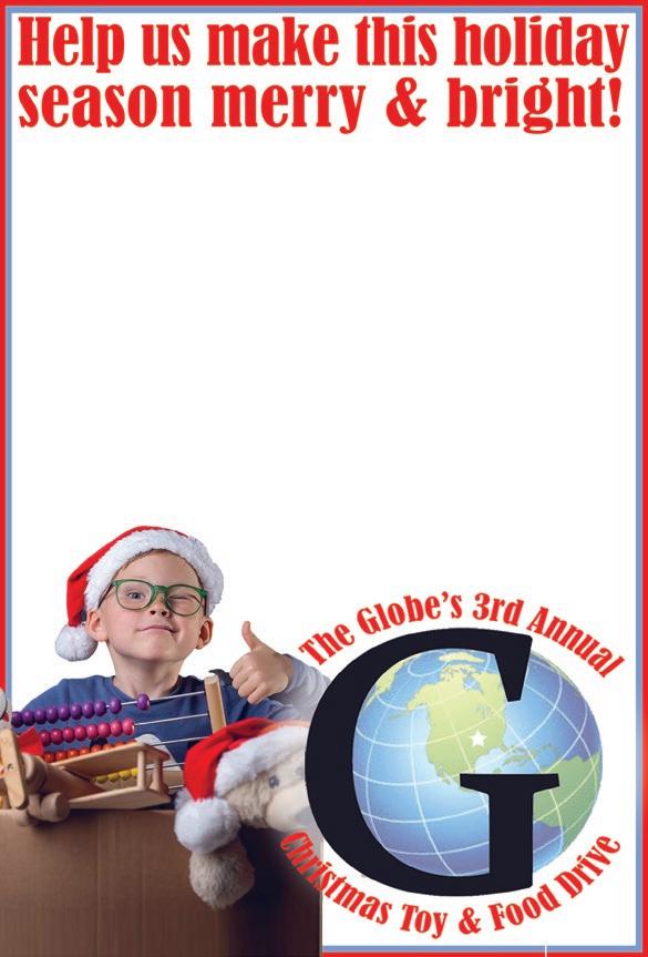Toys and food will be collected through December 23. Please help us spread the word as we work to gether to make the holidays merry for our neighbors in need. For more information, or to become a dropoff site for this year’s drive, please contact the Branson Globe at info@ bransonglobe.com or KD at kdmi chaelsbranson1@gmail.com.
