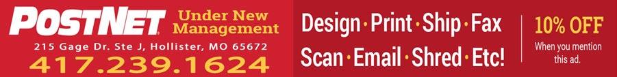 TO ENSURE THE BEST RESPONSE TO YOUR AD... Please make sure your ad is correct in the first issue in which it appears. The Branson Globe is responsible for one day’s charge of the space occupied by the error. If your ad is not correct, call us immediately to have it corrected.