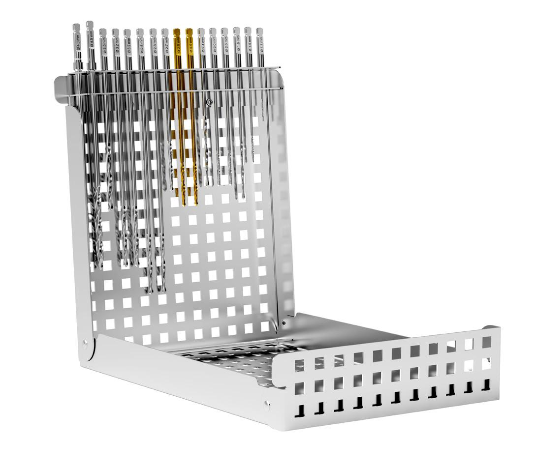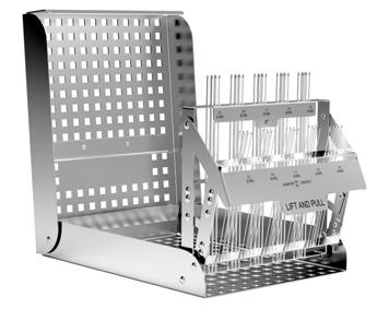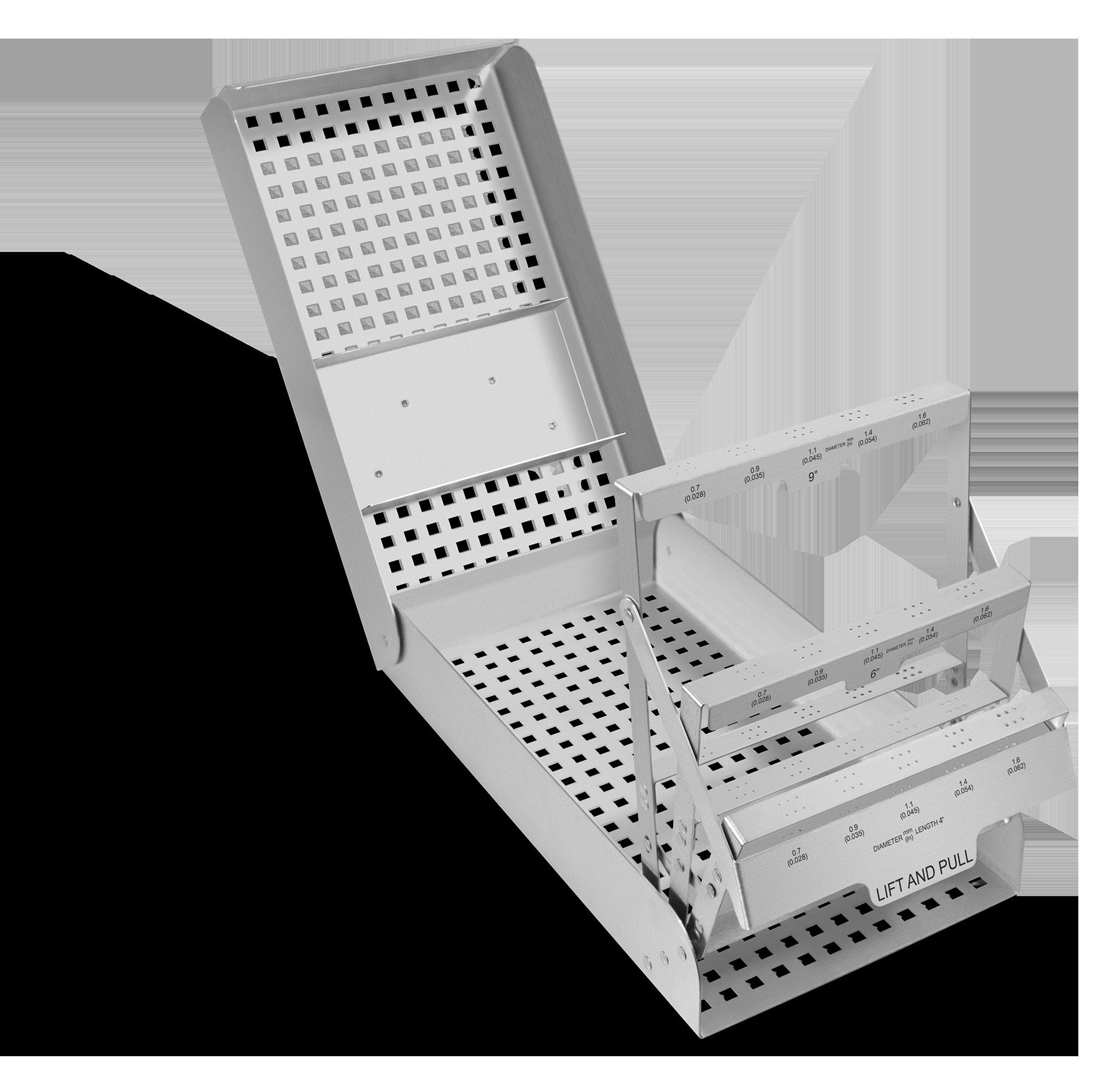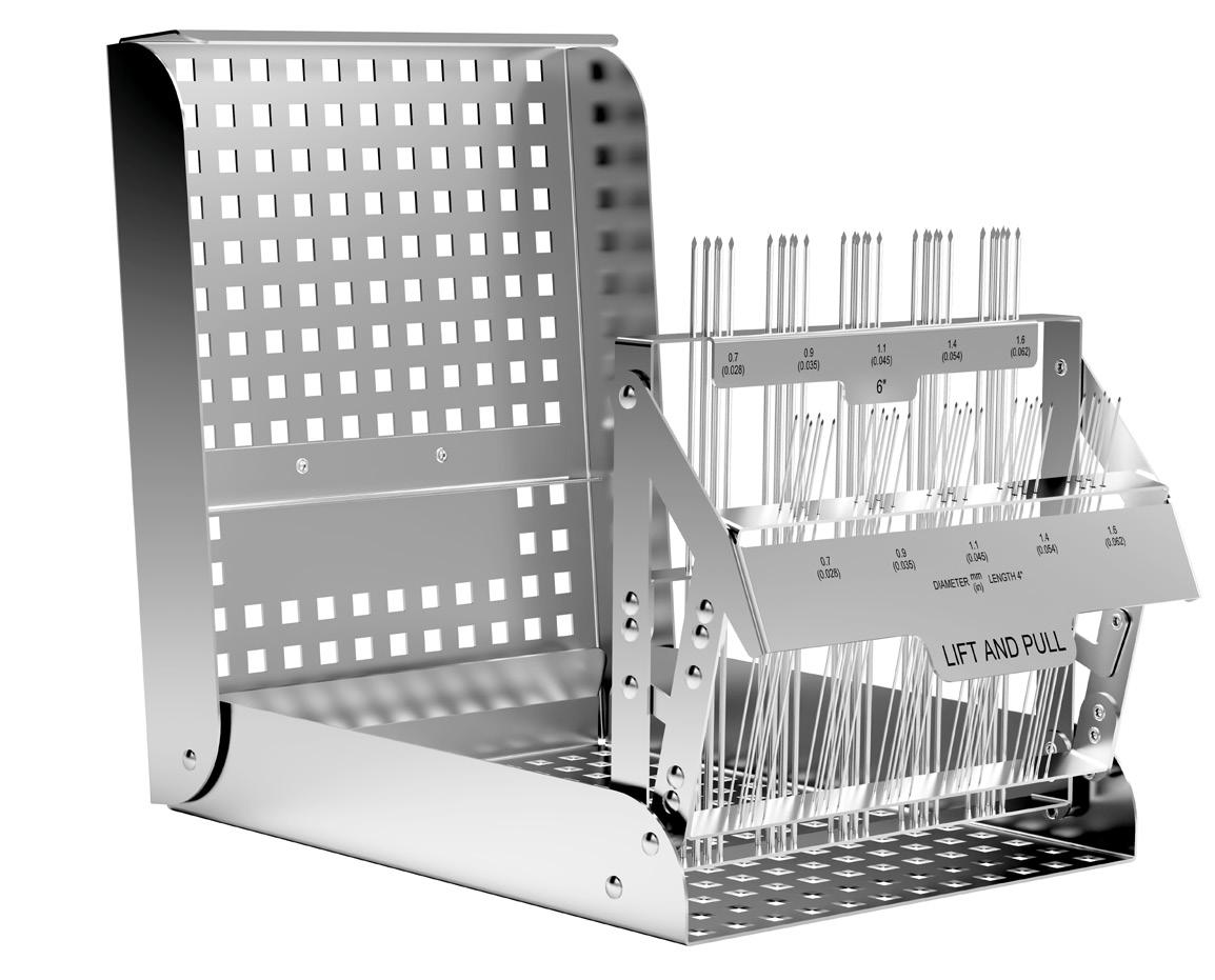 Fabricated from autoclavable stainless steel. Features one piece construction.
