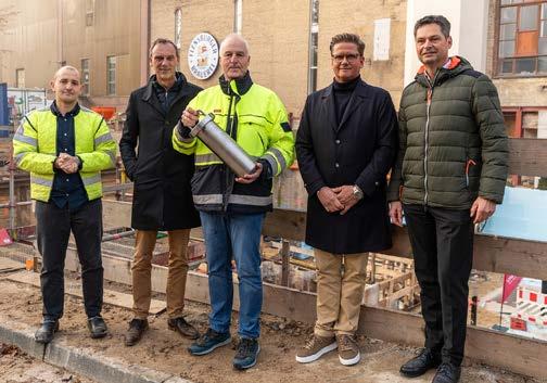 bau Tradition und Moderne: Die denkmalgeschützte gelbe Ziegelfassade wird gestalterisch integriert, eine großzügige Glasfront eröffnet Einblicke in die faszinierende Welt des Brauens, und ein begrüntes Dach unterstreicht die nachhaltige Ausrichtung am historischen Standort Munketoft 12. Damit bekennt sich die Brauerei klar zu Flensburg und zur Weiterentwicklung des Standorts. Der Oberbürgermeister der Stadt Flensburg, Dr. Fabian Geyer, würdigt anlässlich der Grundsteinlegung die Bedeutung des Projekts für die Region und hebt hervor, wie schnell diese Baustelle Gestalt annimmt und voranschreitet.