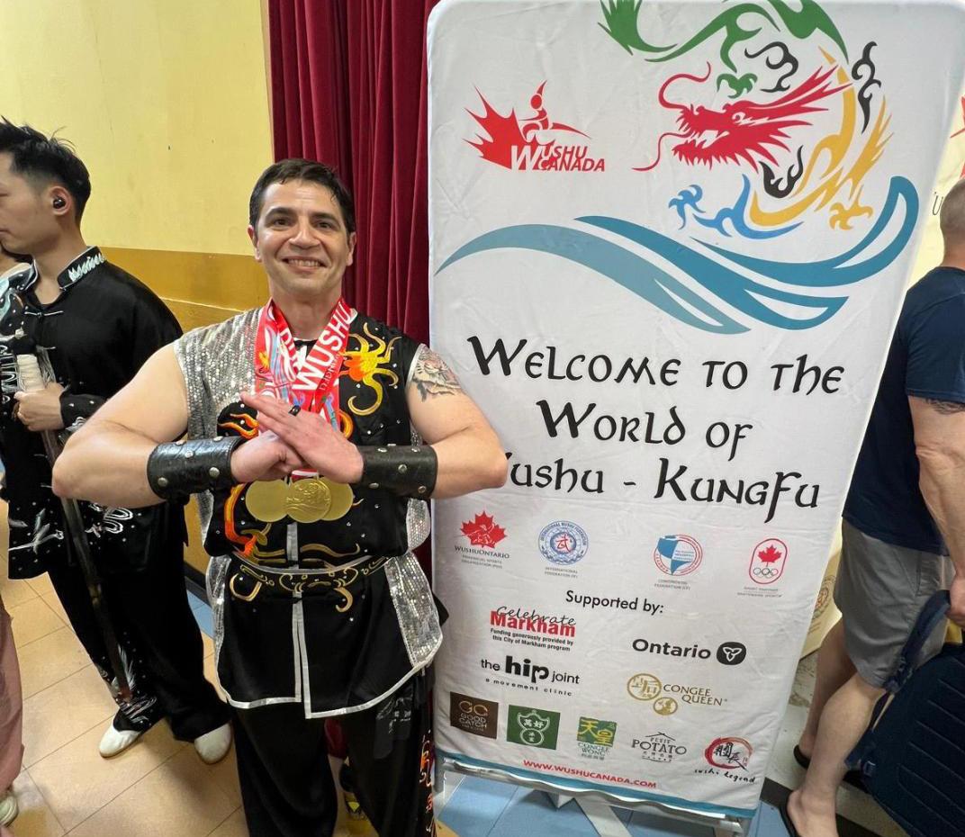 Tony Bahia no Campeonato Pan-Americano de Kung Fu Wushu, torneio organizado pela NSO (National Sports Organization) no Markhan Pan-An Center em Markhan, 2024 (Foto: divulgação)