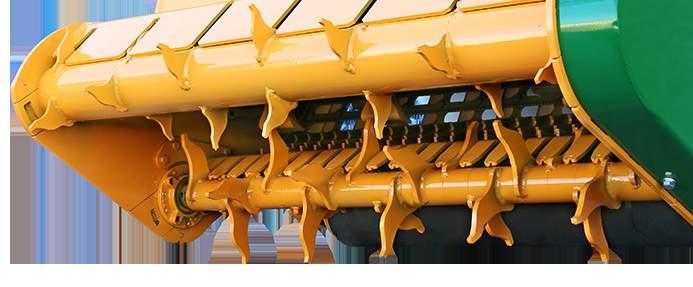 f Rear hydraulic hood with sieve. f 11 lines of counter hammers. f Hidraulic lateral offset.