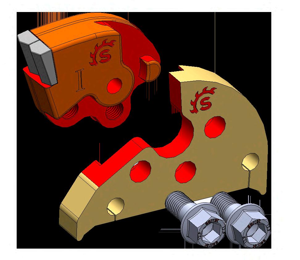Fixe Top System: a system of cutting with teeth in tungsten, it’s characterized by clamp screw not supporting the tooth; they fix it only so that it does not go out laterally. The effort due to the work neutralizes itself inside crenellations between the tooth and the support.