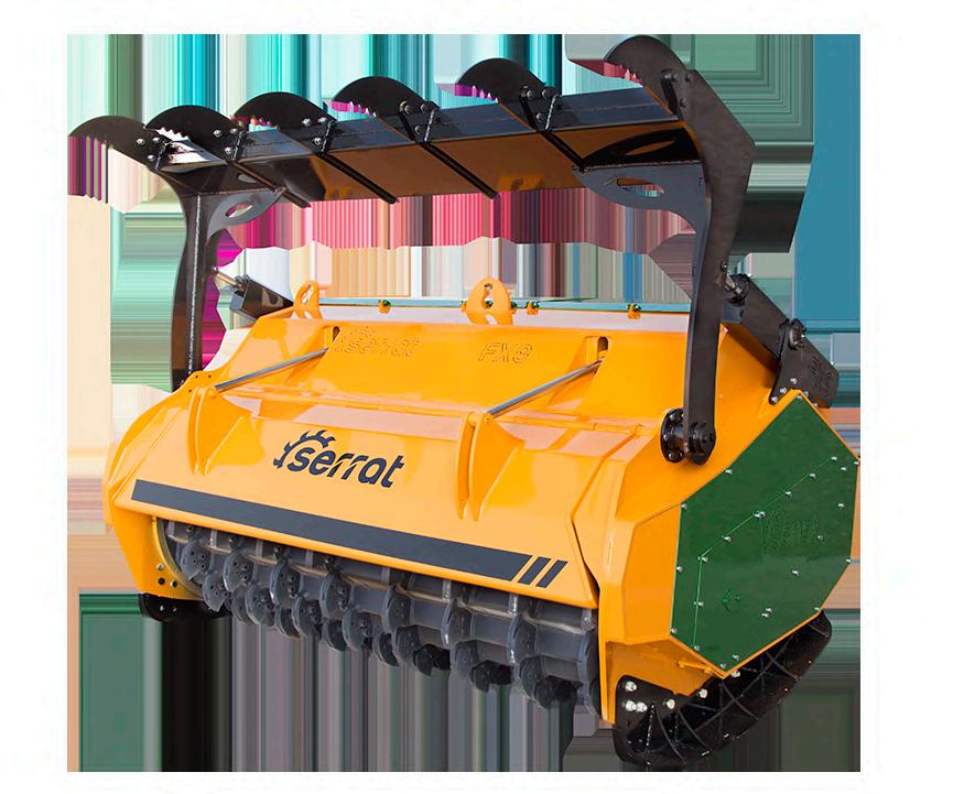 f Forged and tempered steel hammer. Gearbox Serrat drawn specially for forestry mulchers, all its bearings are conical ball rollers.