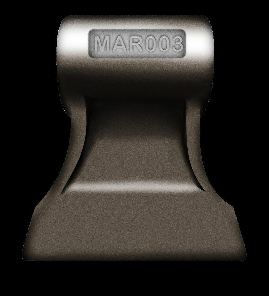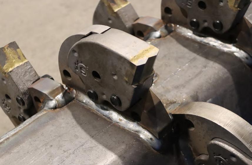 The base of the hammer is of 80 mm compared with 60 mm of a standard hammer, and that avoids problems generated by the side blows in the bars. (Much more stable). Thanks to the width of Serrat hammer (125 mm) we need fewer elements of cutting to cover the width of the crusher and it means a very important economy at the level of operating costs. With a mulcher with Serrat hammers we can work on a material of 100 - 150 mm of diameter and we save time between 30 % and 40 % and an investment of exploitation of less 30 %.