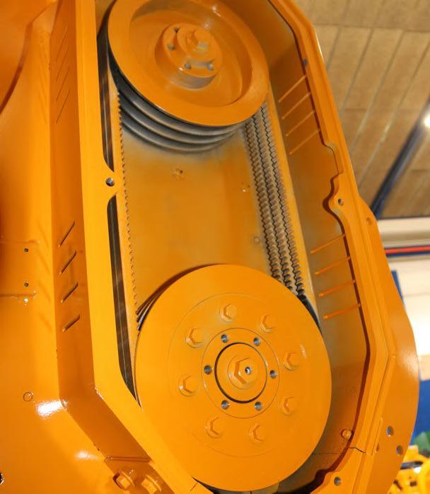 f The tension of the belts is made by moving axes avoiding the roller tensor and the inverted flexions of the belts. The greasing is made by the center of the axis so that the grease divides up in the movement thanks to the centrifugation.