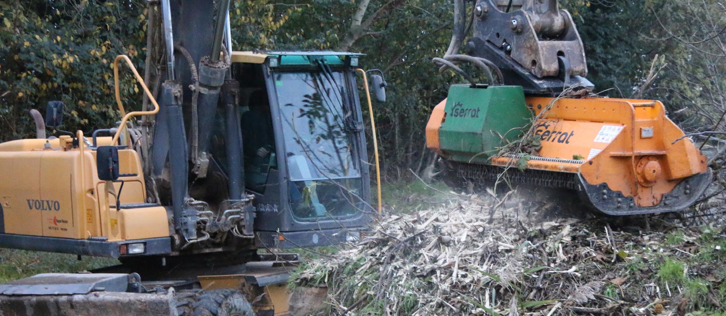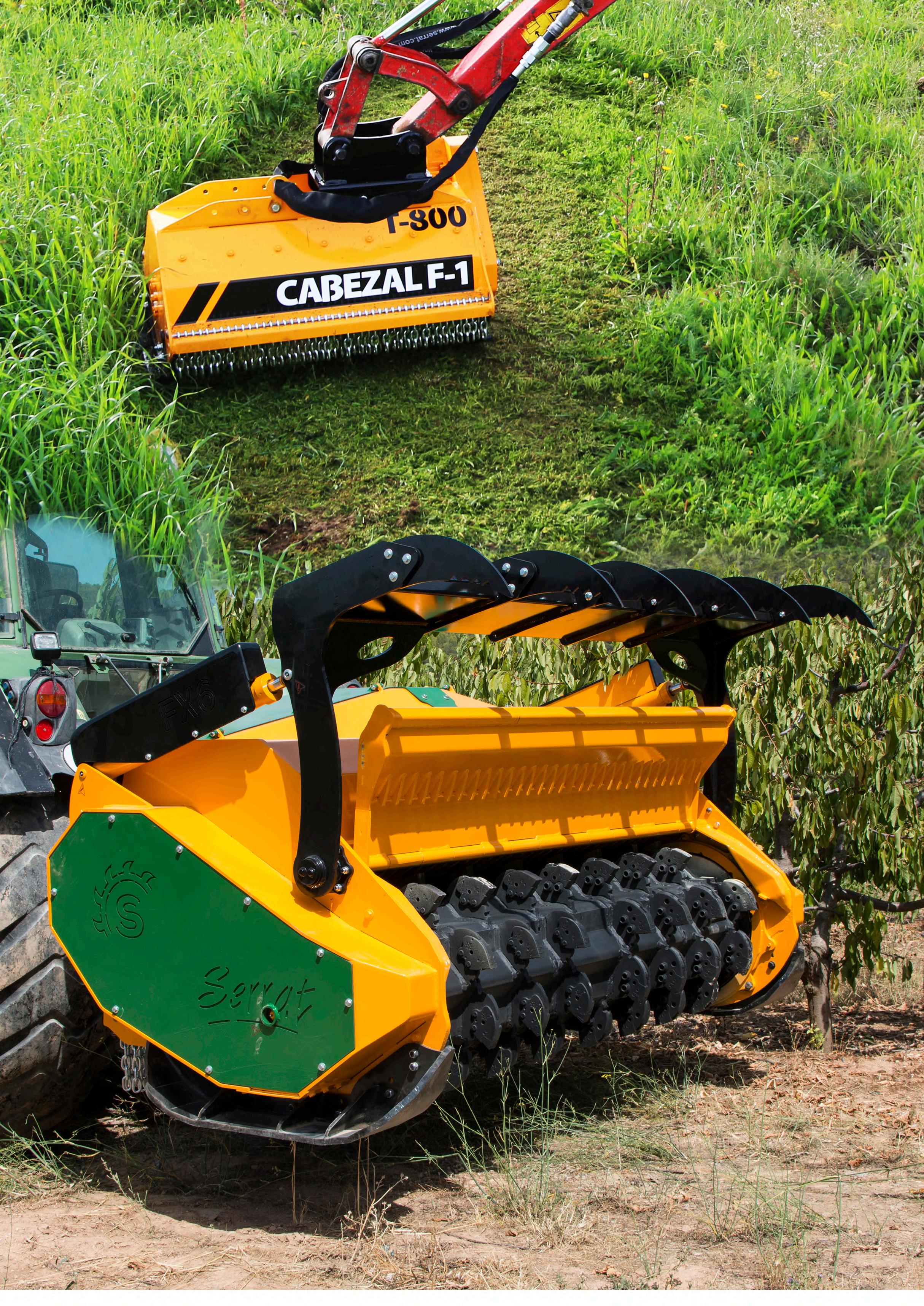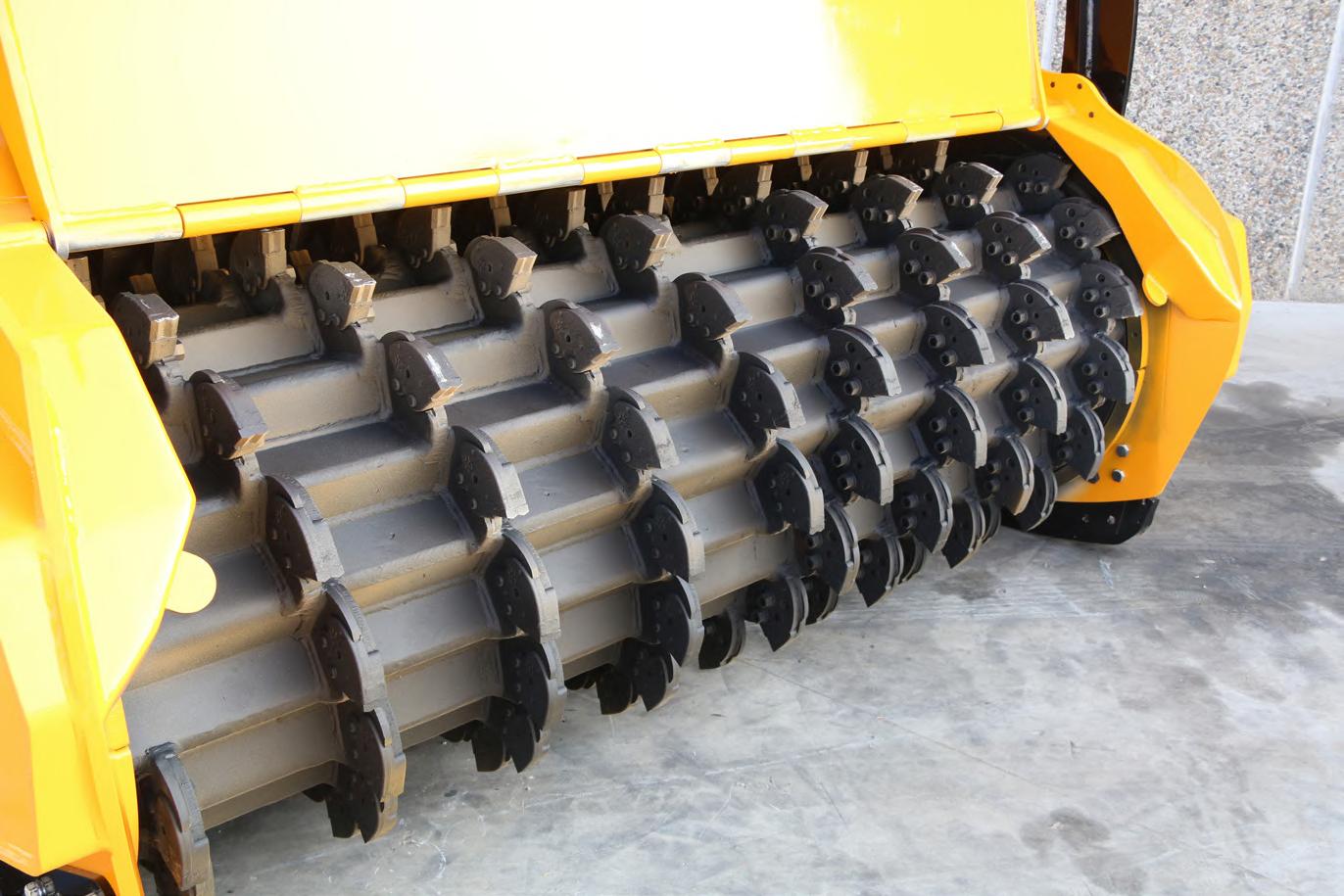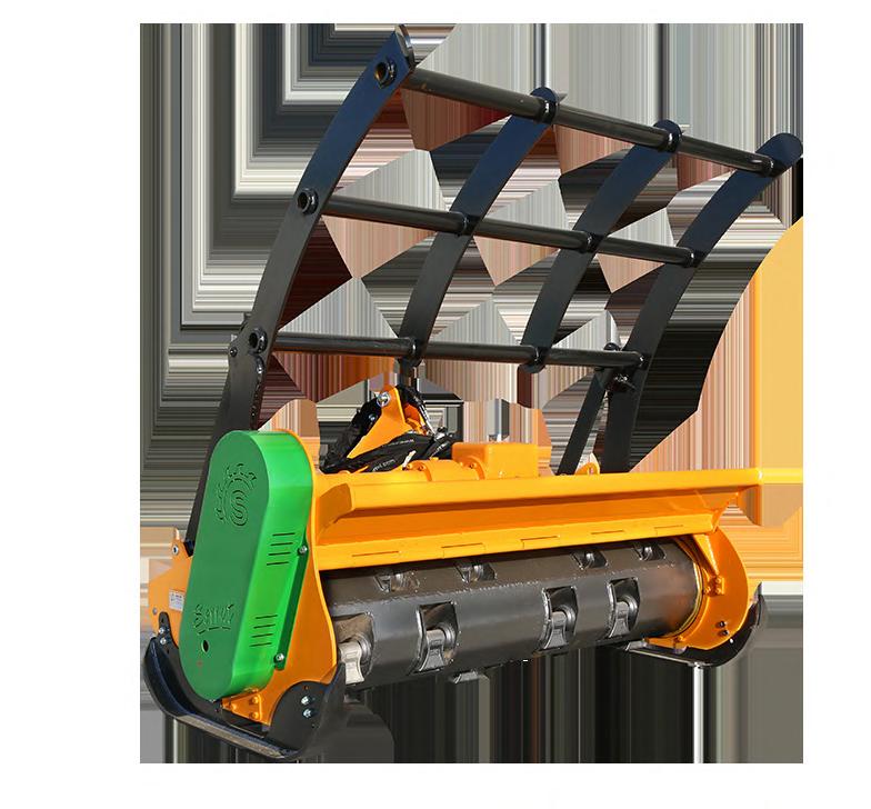 f Suitable for the maintenance of greenspaces, forest maintenance, industrial gardening and bushes up to Ø 100 mm for a rotor with swinging hammers, and up to Ø 350 mm with a rotor with fixed tooth carbide.
