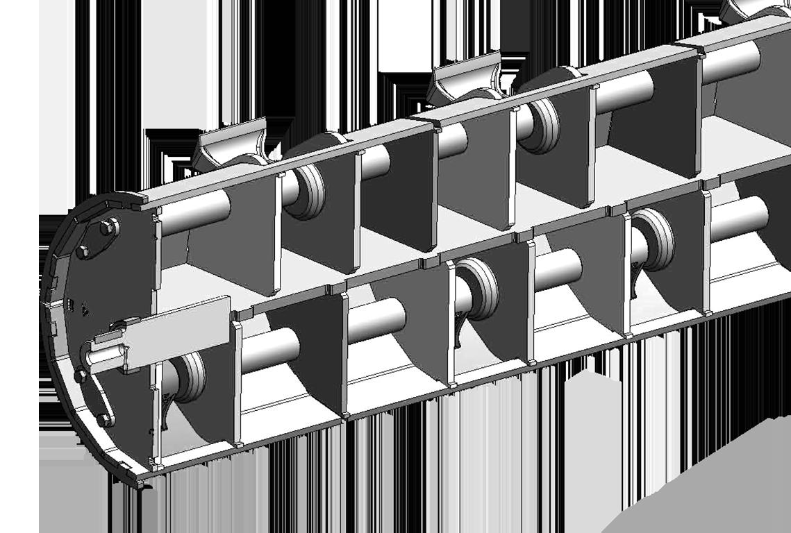 The belding has been studied in protected spaces in order to avoid premature consumption during possible frictions with the ground. Internal plates are incorporated to reinforce the axis.