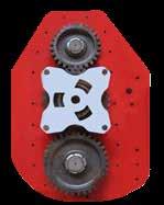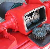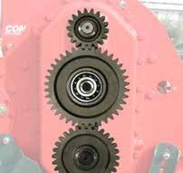 Trasmissione laterale ad ingranaggi in bagno di grasso supportati da robusti cuscinetti. Gear driven side transmission in a grease bath mounted on heavy duty bearings. Entraînement latérale par engrenages en bain de graisse monté sur des roulements robustes. seitenzahnradantrieb im Fettbad auf Hochleistungslagern.