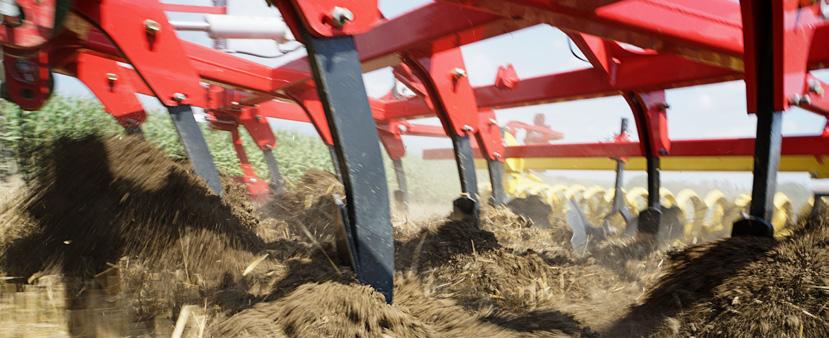 Det store flow og en længere konstruktion kombineret med en symmetrisk fjederposition gør TERRIA-modellerne med 4 rækker tænder til et universelt anvendeligt redskab i det moderne landbrug. Det høje flow sørger selv ved store mængder organisk materiale for en pålidelig indarbejdning og et utroligt godt resultat. Takket være den længere konstruktion bliver jorden længere i tandområdet, og der opnås en perfekt udjævning.