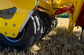 Arbejdsredskaberne på den bugserede stubharve TERRIA er placeret symmetrisk langs en tænkt midterlinje. Det sikrer en ensartet gennemarbejdning af jorden, også ved mindre arbejdsdybder.