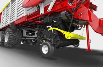 For at få en så snæver venderadius som muligt er hjulene integreret i harven – det giver en kompakt samlet længde. TERRIA er som standard udstyret med et 2-hjulschassis, som tilvalg fås de 6 m lange maskiner med et 4-hjulschassis. Det sørger for en stor kontaktflade og dermed den bedste jordbehandling.