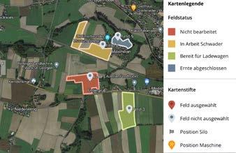 Køretøjerne i høstkæden vises i realtid. Det muliggør en optimal koordination og visning. Tomkørsel og unødvendige kørsler undgås.