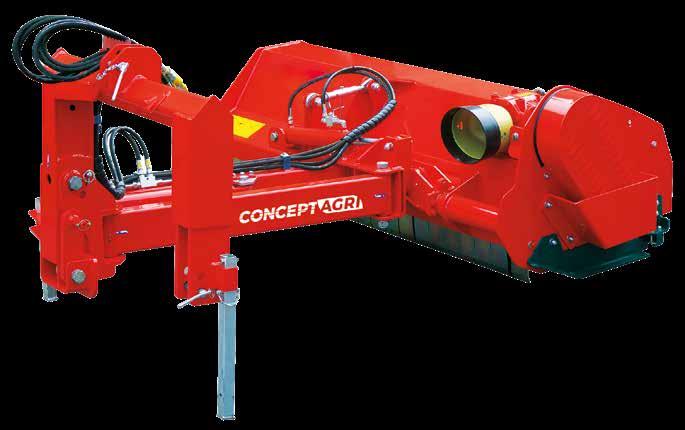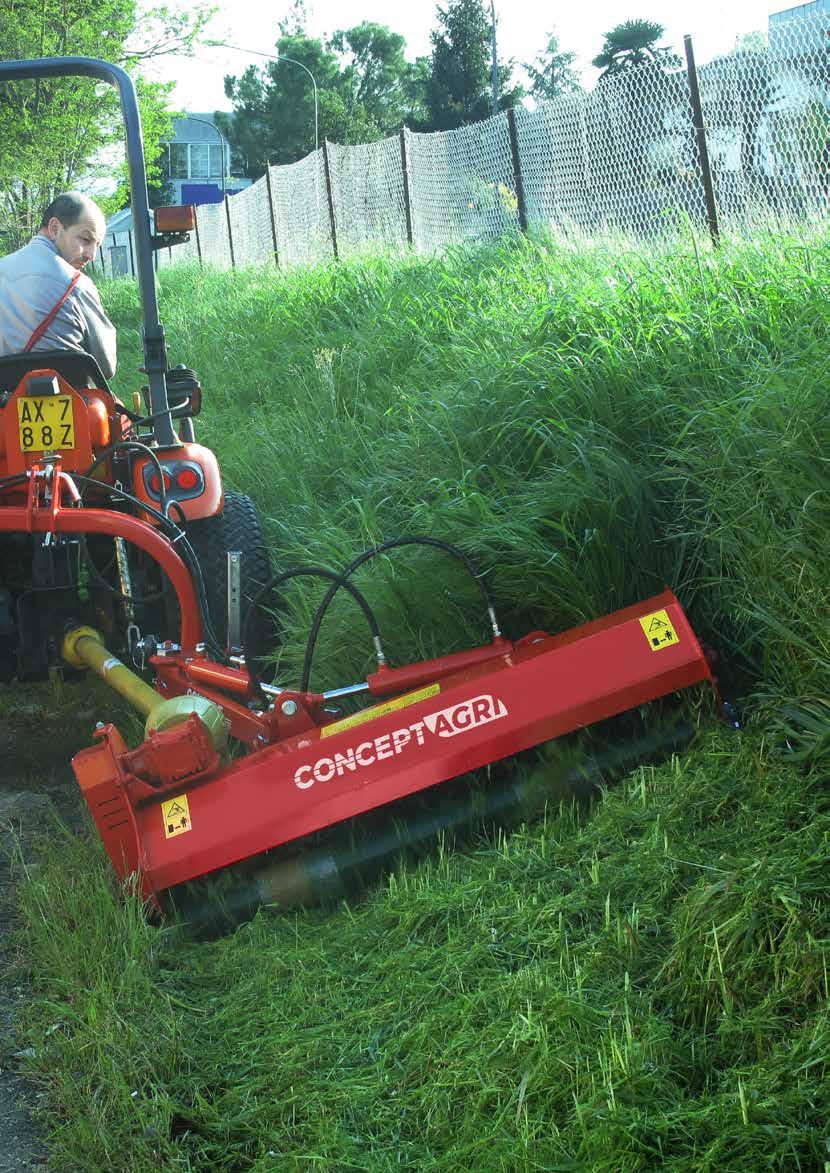 Grâce au déplacement de plus de 1.20 mt du centre du tracteur, le broyeur travaille en toute sécurité avec les roues du tracteur loin du bord de routes.