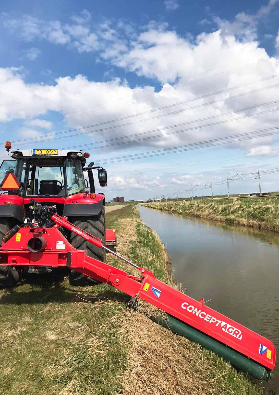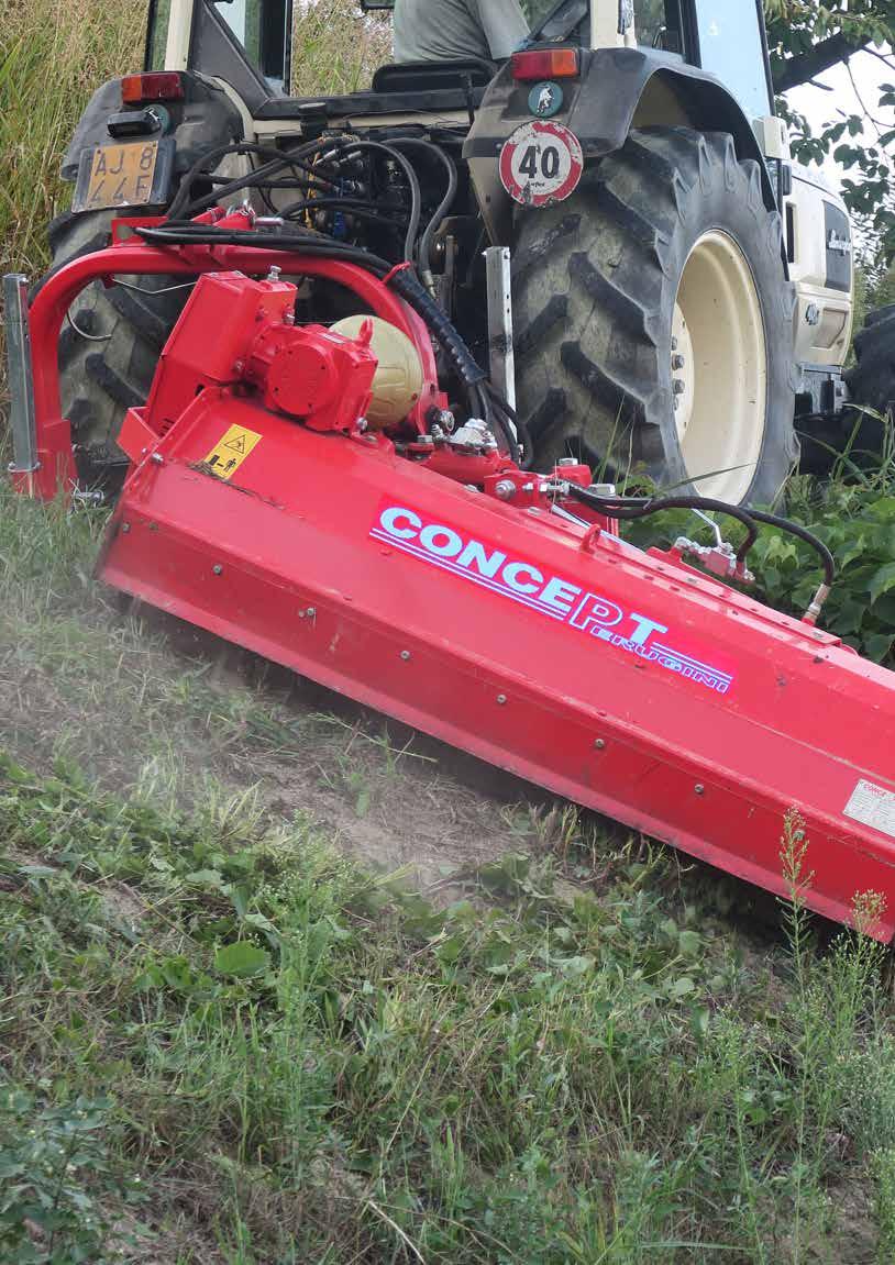 Out board gearbox suitable for cutting dikes an under vegetation. Avec boîtier à l’extérieur pour les travaux dans les fossès et talus. mit aussenseitem GeTriebe für Dämma und Böschungen.
