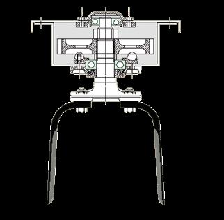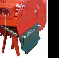 travail. L’arbre du rotor et le porte-dents dans une seule pièce tournent sur deux roulements coniques inserés dans un support en acier imprimé qui garantie le même alignement pendant tout le temps. Un joint d’étancheite de notre conception empêche la fuite de huil et l’entrée de cailloux.