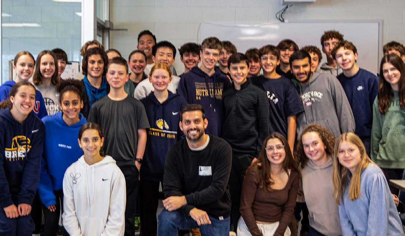 34. GRACE ZUMWINKLE ’17 visited campus in October and brought with her the Walter Cup, which her team won in the inaugural PWHL championship in May. She is pictured with Breck’s girls hockey team.