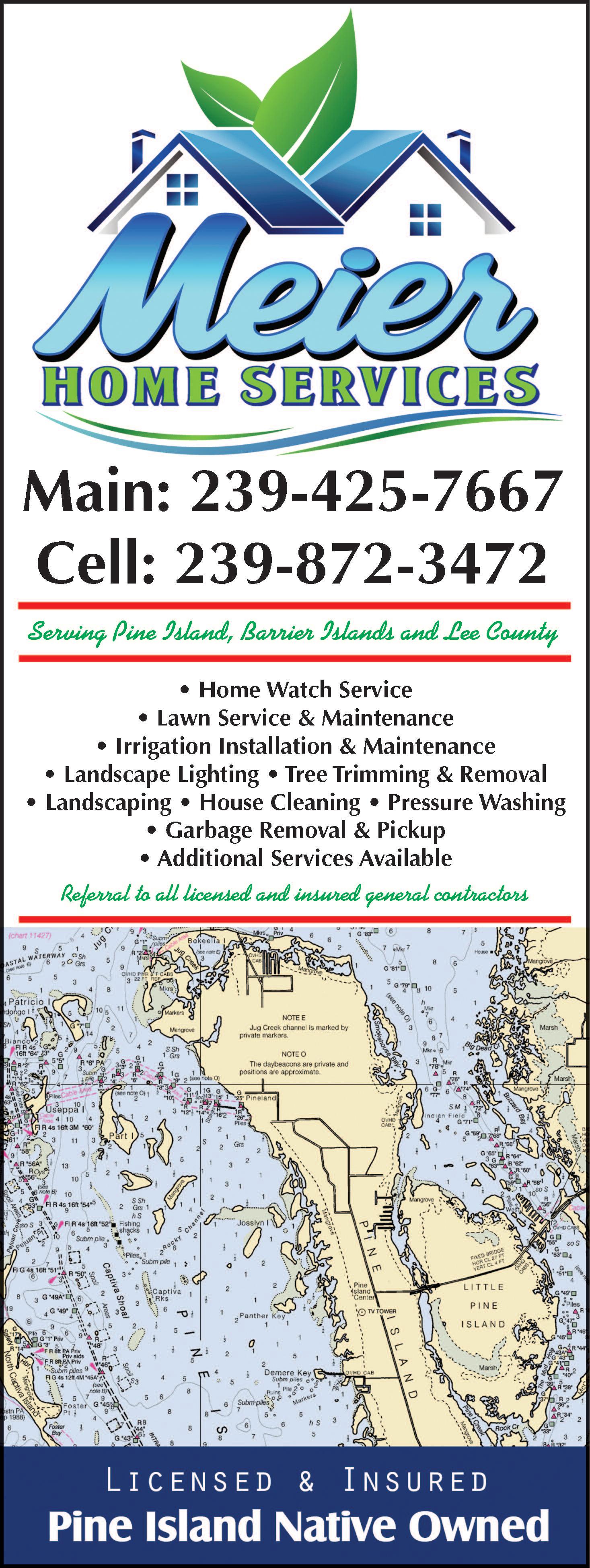 P a g e 1 9 ■ W e e k o f W e d n e s d a y , F e b r u a r y 1 , 2 0 2 3 b r e e z e n e w s p a p e r s . c o m P i n e I s l a n d E a g l e AFFORDABLE FREE ESTIMATES $1,800.00FourZones NewInstallation IncludesPermit 2 YearWarranty A+RATED-ANGIESLIST Installation&Repair FAMILYOWNEDSINCE1981 LEE#LSO200031 CAPE#06938 UltraPlumbing &DrainCleaning,Inc PlumbingInstallations ServiceandRepair 24/7EmergencyServices DrainBack-Ups PipeBursts Residential&Commercial Honest-Professional Affordable Veteran&SeniorDiscounts FreeEstimates 239-203-7047 FacebookandInstagram @ultraplumbingservice L icensed&InsuredLic#CFC1430549 A Tip Top Rescreen Pool Screen Repair Rescreen and Repair for an Affordable Price. Call For Your Free Estimate 239-440-6857 Licensed and Insured AFFORDABLE FREE ESTIMATES $1,800.00FourZones NewInstallation IncludesPermit 2YearWarranty A+RATED-ANGIESLIST Installation&Repair FAMILYOWNEDSINCE1981 LEE#LSO200031 CAPE#06938 Gulf Coast Stump Grinding Stump Grinding Land Clearing Forestry Mowing Light Tree Removal We rent grinders by the day or half day for do-it-yourselfers Over 20 years experience Ask for James 239-406-3676 Licensed and Insured