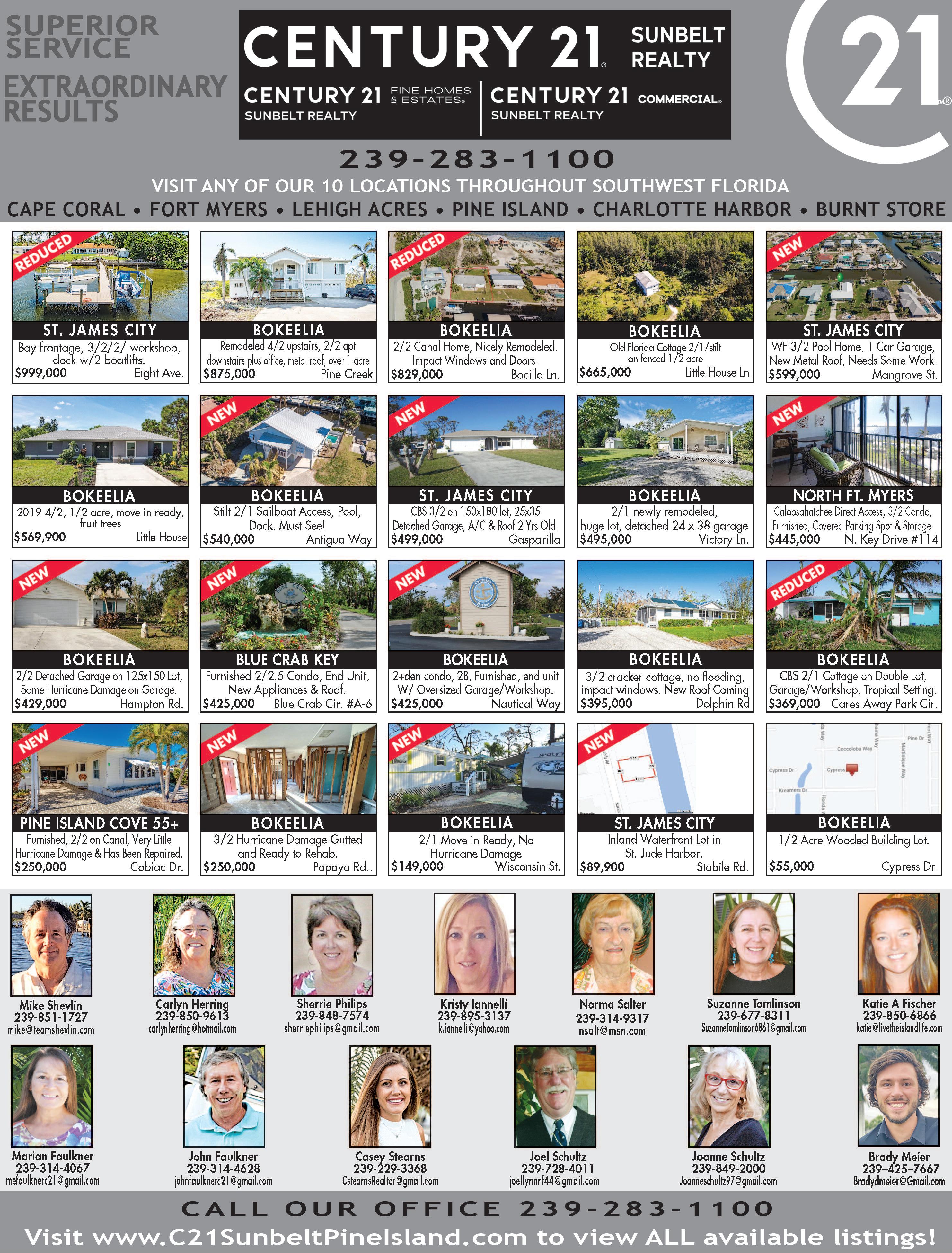 com Subscriptions 1 Year $52 To Pay For Your Subscription P O Box 151306 Cape Coral FL 33915 Circulation (239) 574-1936 Classified Advertising (239) 574-5644 Display Advertising (239) 283-2022 Customer service hours are Monday through Friday, 8:30 a m to 5 p m , except major holidays Letters to the editor must be typed or handprinted Your name and phone number must be affixed to the copy In the event of an advertising error we are responsible only for the first incorrect insertion of the ad itself We are not responsible for any credit or reimbursement after 30 days from publication Postal Information: Bulk rate postage paid at Fort Myers, FL Postmaster Send address changes to the Pine Island Eagle Permit # 521 The Eagle is published every Wednesday 10700 Stringfellow Road, Ste 60 Bokeelia, FL 33922 Phone: (239) 283-2022 Fax: (239) 283-0232 Web: pineisland-eagle com
