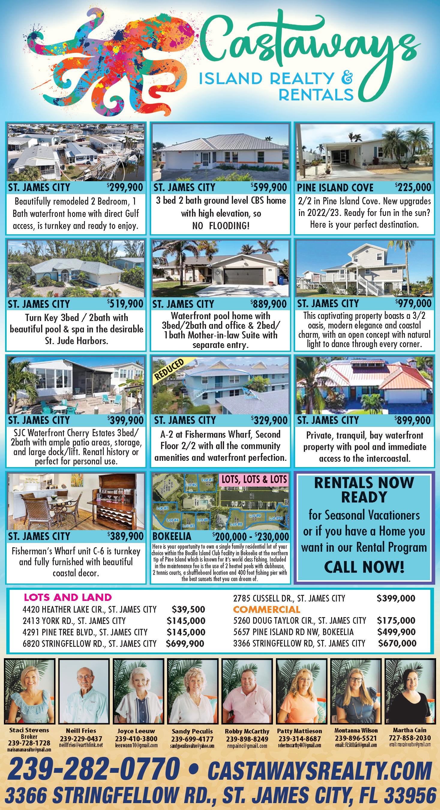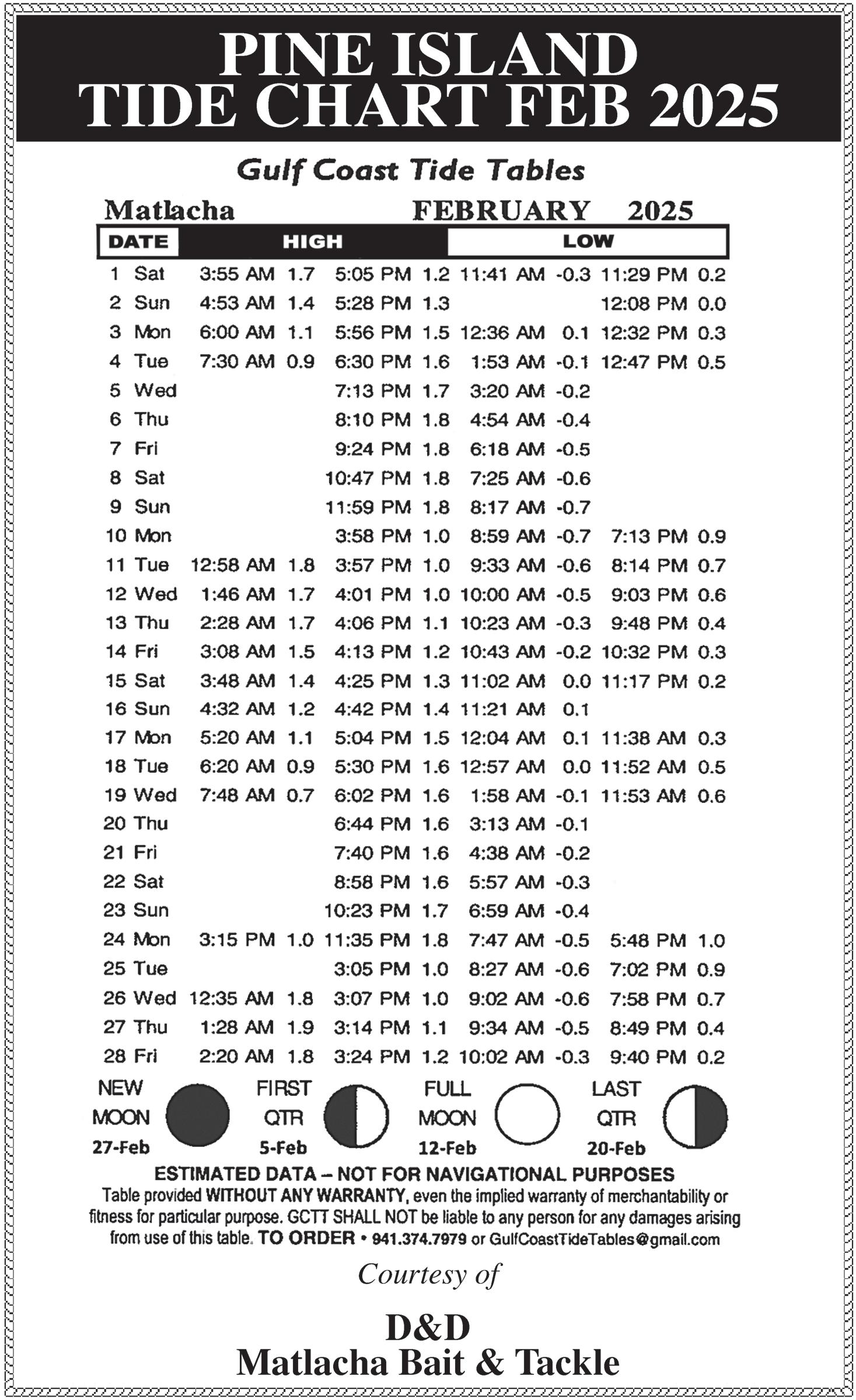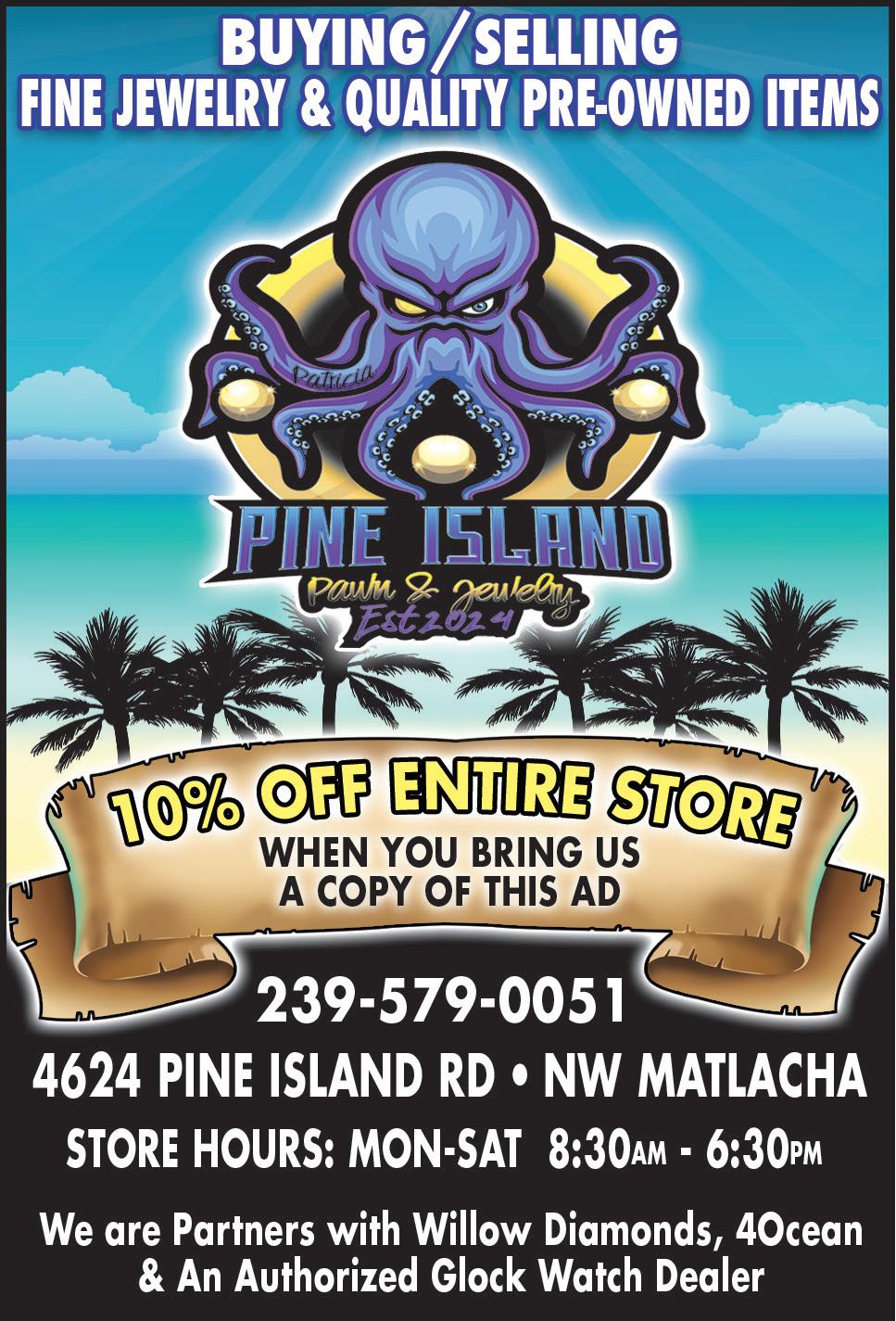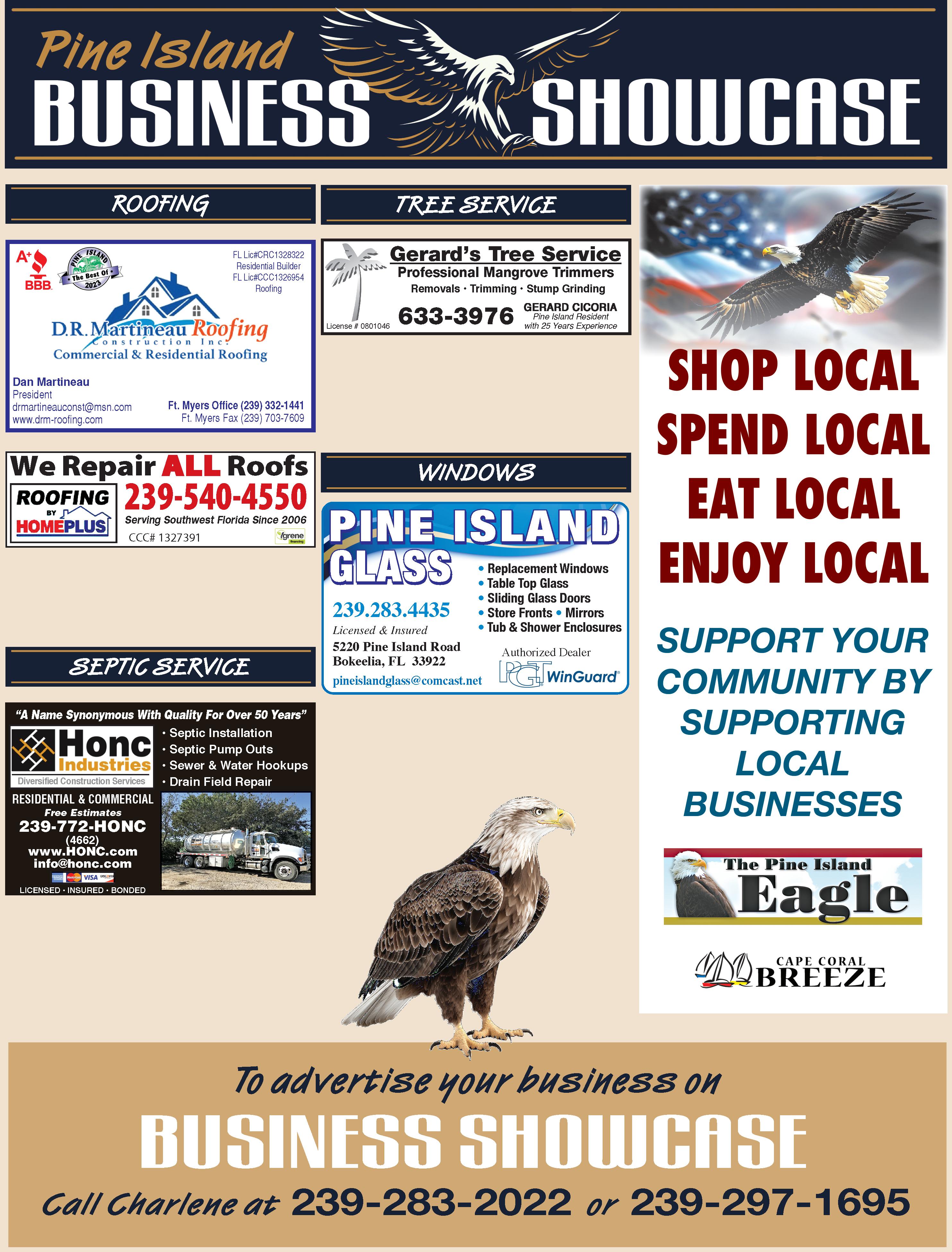 In the event of an advertising error, we are responsible only for the first incorrect insertion of the ad itself. We are not responsible for any credit or reimbursement after 30 days from publication. Postal Information: Bulk rate postage paid at Fort Myers, FL Postmaster. Send address changes to the Pine Island Eagle. Permit # 521.
