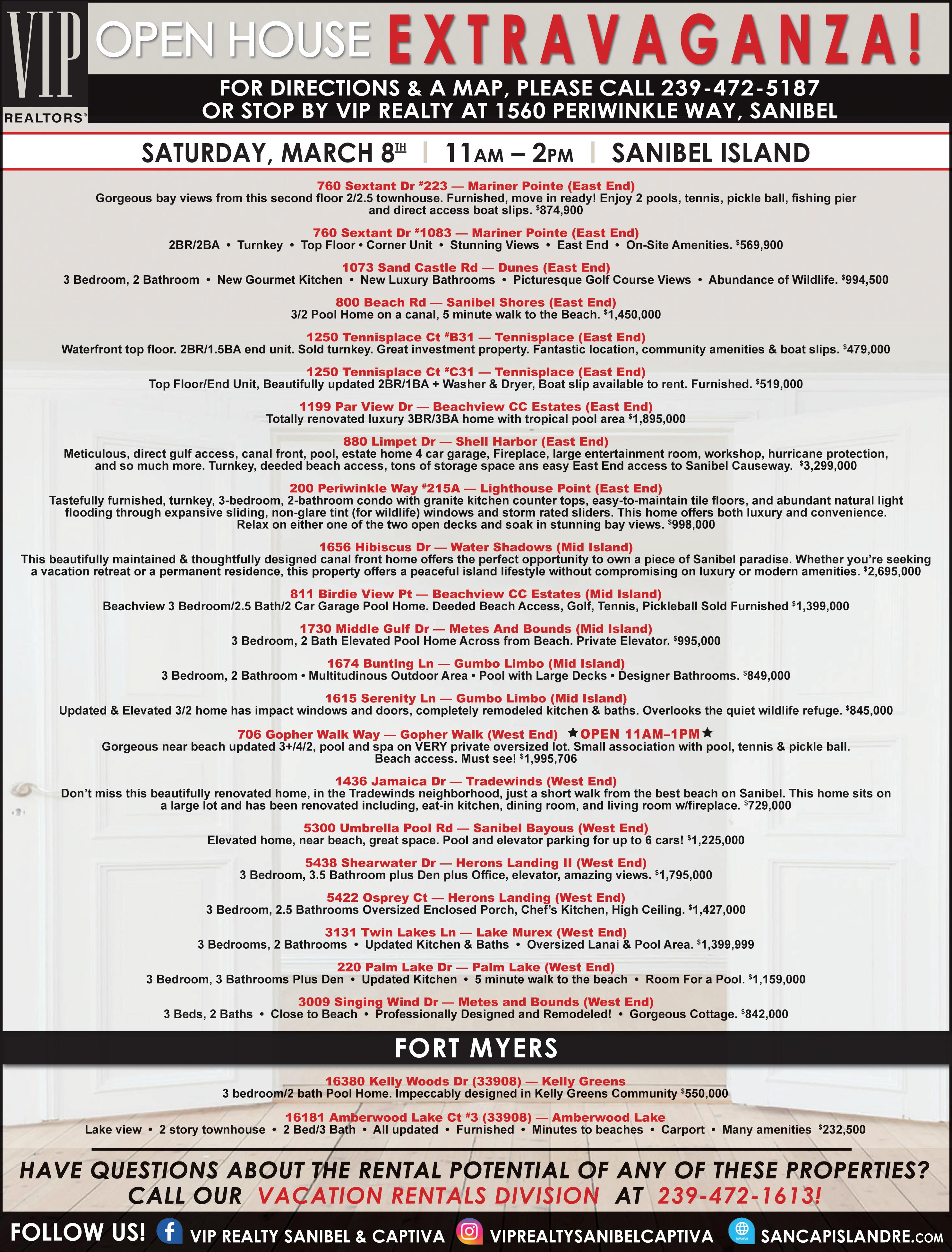 Presented by the Shellcrafters and Sanibel Community Association, the 88th Annual Shell Festival will take place on March 6-8 from 9 a.m. to 3 p.m. at The Community House on Sanibel. Just across the Sanibel Causeway, the Sanibel-Captiva Shell Club will host the 2025 Sanibel Shell Show on March 6-7 from 9 a.m. to 5 p.m. and March 8 from 9 am to 4 p.m. at the Marriott Sanibel Harbour Resort & Spa.