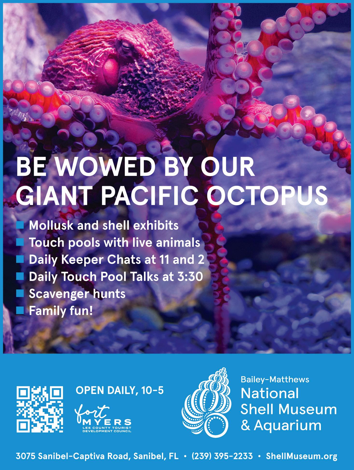 The Bailey-Matthews National Shell Museum & Aquarium held its annual benefit gala, “Still the One,” on Feb. 8 at The Community House on Sanibel. It celebrated 30 years as the one and only accredited museum in the United States of shells, mollusks and their ecosystems. Called a tremendous success, the gala raised funds for a range of educational offerings by the museum, including K-12 school programs, clean water education and lifelong learning. It featured live music by The Rockefellers, a retrospective film on the museum’s history and catered dinner, along with an auction of items and experiences and a Paddles Up. The Sanibel Captiva Trust Company was the presenting sponsor. To view more photos from the event and sponsor recognition, visit ShellMuseum. org/2025-gala-recap-stillthe-one.