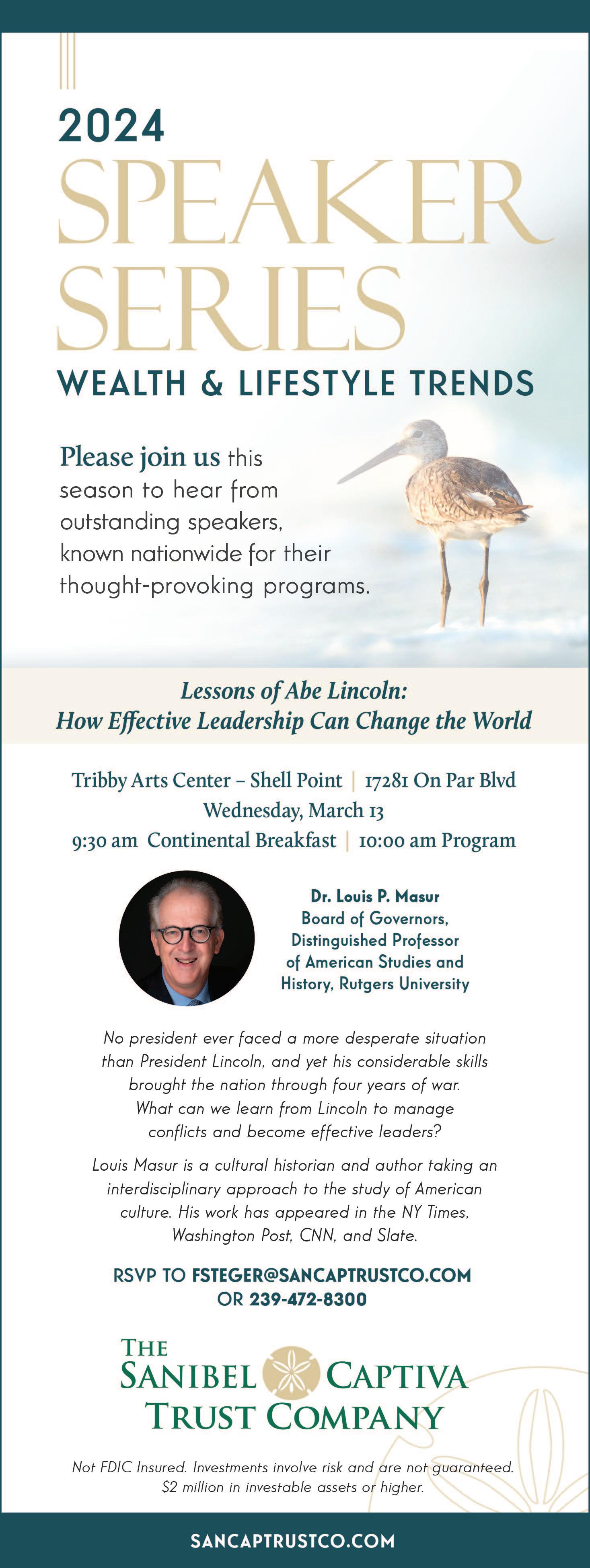 A Leisure Lunch will be held on March 12 from noon to 1 p m at Traders, at 1551 Periwinkle Way, Sanibel. Attendees will order and pay individually For more information or to reserve a spot, contact Deborah Butler at deborahpbutler@comcast net