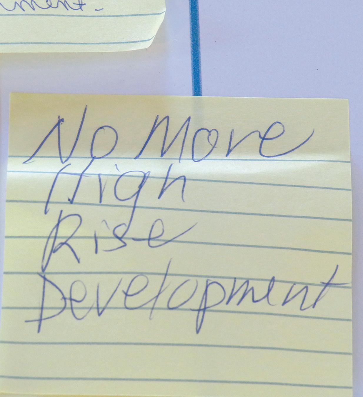 quite clear: Keep the plan the way it is. Asked by staff to write out one-sentence visions for the future of Fort Myers Beach, residents wrote things like “no more high-rise development,” “no changes to the comp plan,” “keep supporting local businesses,” “no to Seagate,” “no food truck parks,” “no high-rises in residential areas” and “low-rise buildings,” “no e-bikes on the beach” and “protect our environment.”