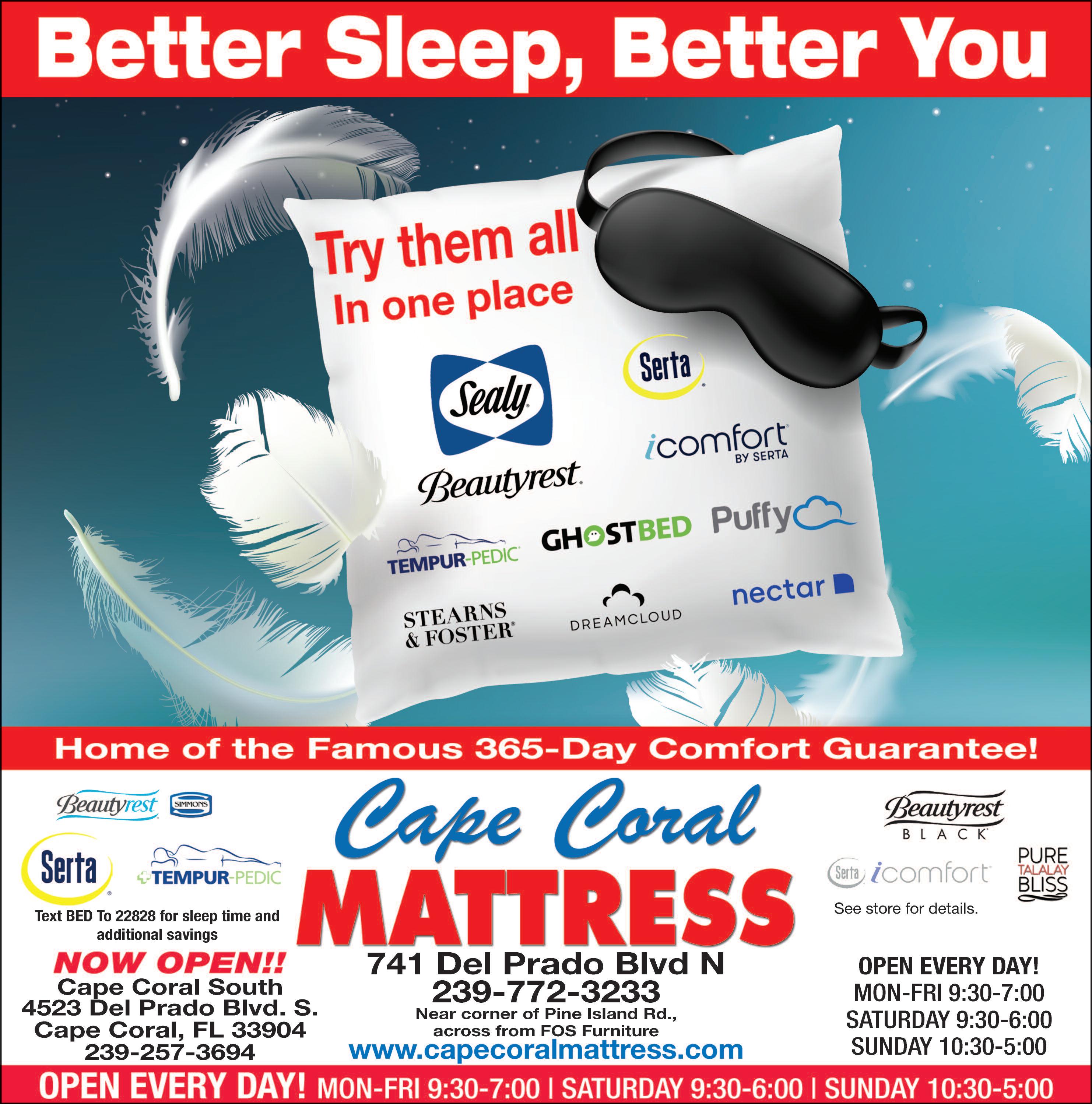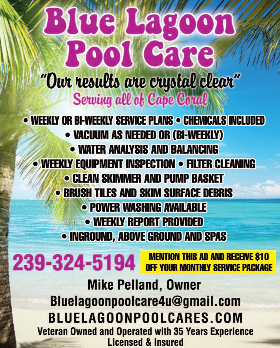 NewInstallation IncludesPermit 2YearWarranty A+RATED-ANGIESLIST Installation&Repair FAMILYOWNEDSINCE1981 LEE#LSO200031 CAPE#06938 UltraPlumbing &DrainCleaning,Inc PlumbingInstallations ServiceandRepair 24/7EmergencyServices D rainBack-Ups PipeBursts Residential&Commercial Honest-Professional Affordable Veteran&SeniorDiscounts FreeEstimates 239-203-7047 FacebookandInstagram @ultraplumbingservice Licensed&InsuredLic#CFC1430549 YourServicePlumber ForAllYourPlumbingNeeds WellPumps R.O.Systems WaterSofteners Re-PipeSpecialist Sewer&WaterHookUps $50.00off anyserviceover$250.00 Over25YearsExperience Veteran&SeniorDiscounts FreeEstimates 239-940-7978 CreditCardsAccepted License#CFC1430070 AFFORDABLE FREE ESTIMATES $1,800.00FourZones NewInstallation IncludesPermit 2YearWarranty A+RATED-ANGIESLIST Installation&Repair FAMILYOWNEDSINCE1981 LEE#LSO200031 CAPE#06938 Tony’s Tree Service fortmyersbeachtalk .com captivasanibel fortmyersbeachtalk com fortmyersbeachtalk .com captivasanibel Page 12B March 24 2023 w w w capecoral breeze com CAPE CORAL BREE ZE