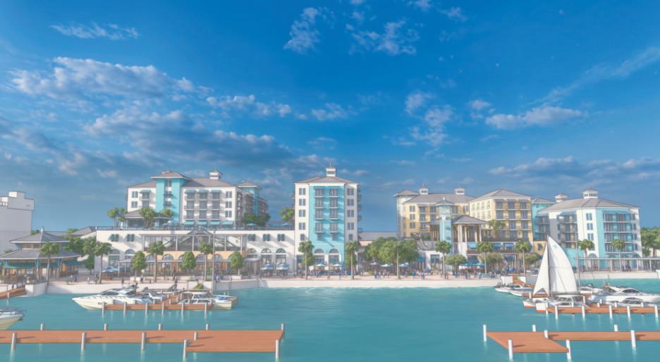 Renderings for the new proposed Arches Bayfront hotel and commercial development as submitted to the Town of Fort Myers Beach by the Freeland family. The plans for the project, at the site of Moss Marina, are set to be heard in front of the Fort Myers Beach Local Planning Agency on April 8. Rendering credit: Jay Kamb Group from filings with Town of Fort Myers Beach.