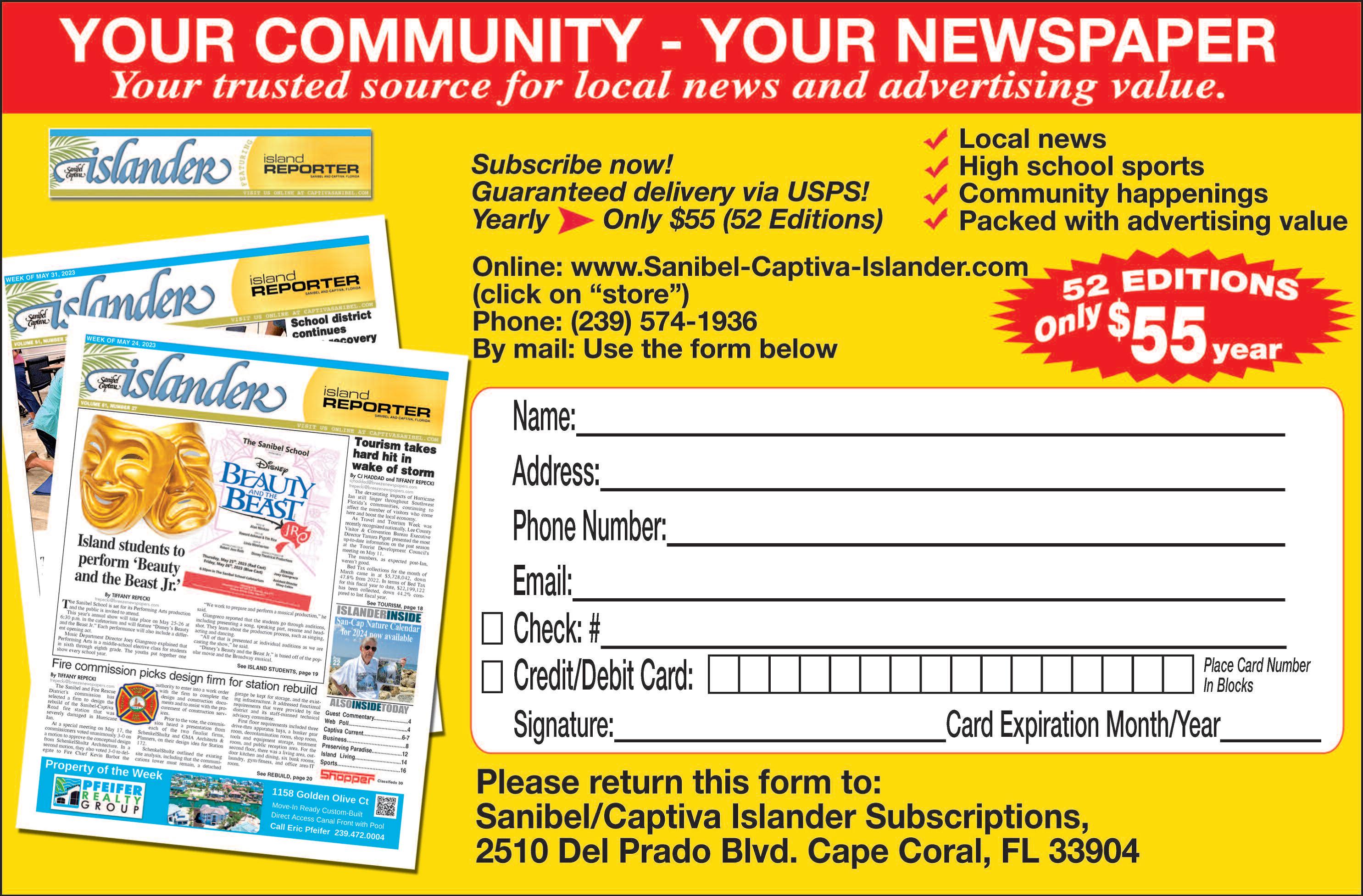 “As we have for over 40 years, F I S H remains committed to the bett e r m e n t o f t h e i s l a n d s a n d t h e Southwest Florida community by assisting one neighbor at a time,” Executive Director Maria Espinoza said “In addition to our response to Ian, F I S H is actively meeting the needs of the community even during blue skies ”