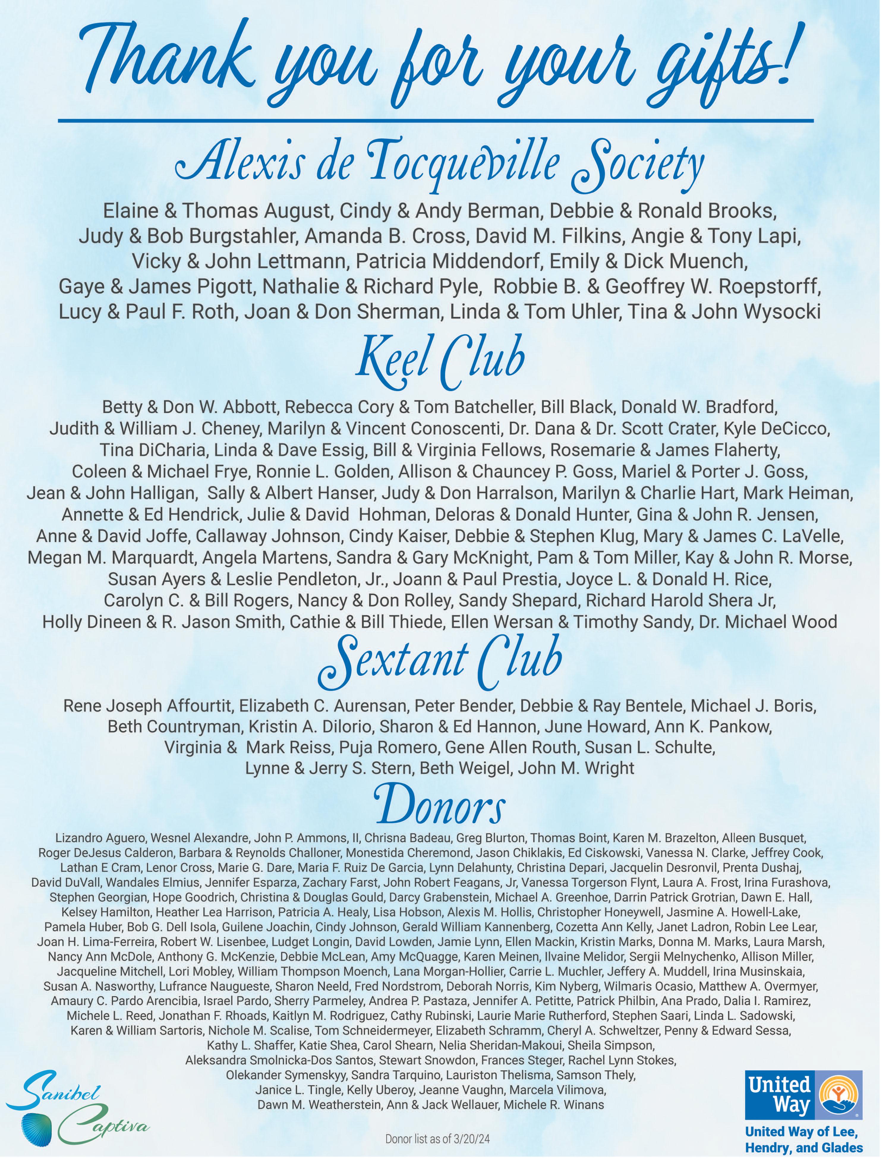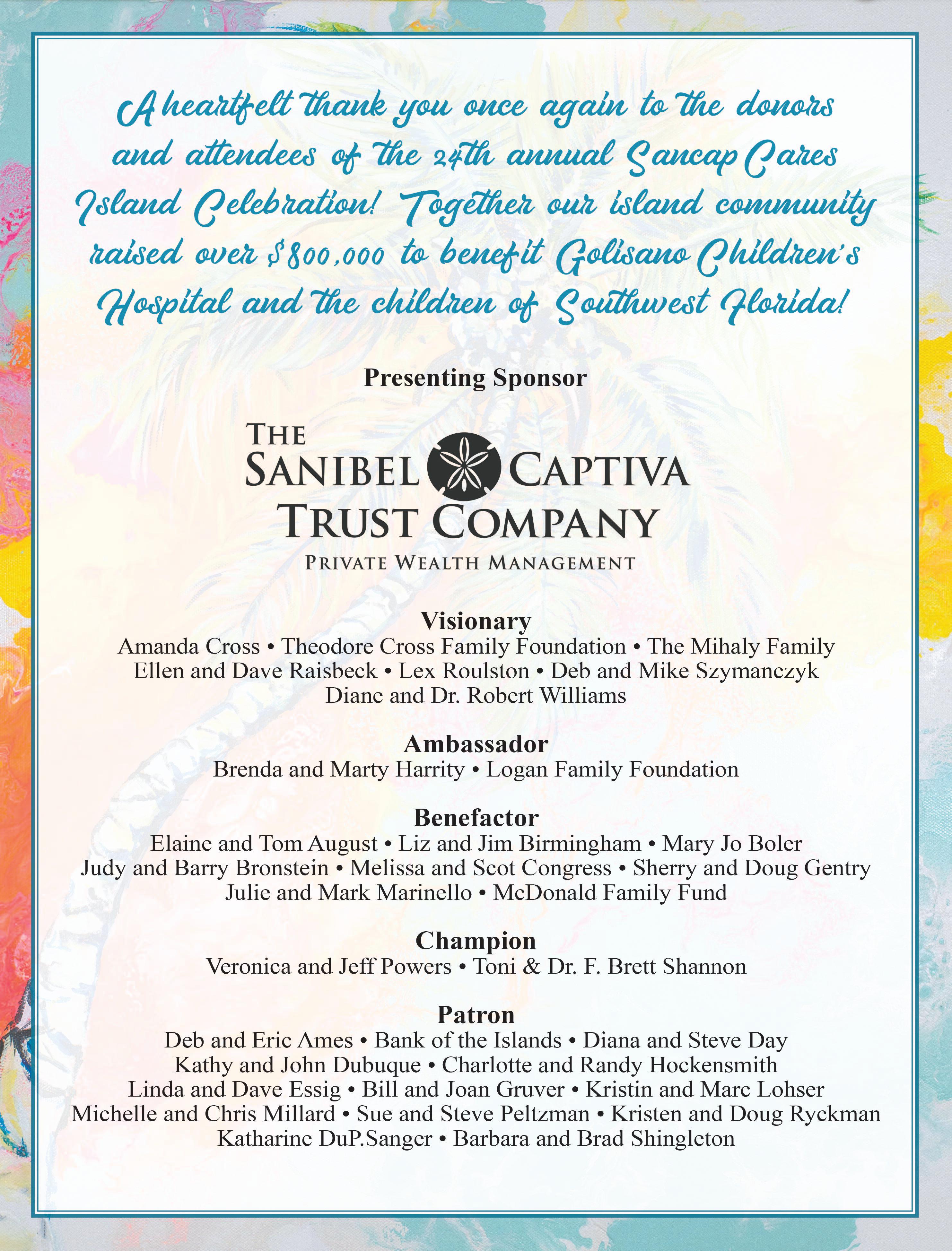 The Sanibel-Captiva Conservation Foundation hosted Cause for the Campus on March 2 at the Bailey Homestead Preserve on Sanibel With the contributions of 150 supporters, it raised $450,000 for the Sanibel Sea School campus. Attendees were treated to a cocktail hour, tented dinner and live music Through sponsorships and an auction, funds were secured for repairs and enhancements like a new roof on the front building, wraparound decking on the Kennedy Building, an outdoor learning amphitheater, a revitalized play yard area and an upgraded storage facility Additionally, scholarship funding was secured Thanks to the support of the Jenni & Kyle Foundation, the short film