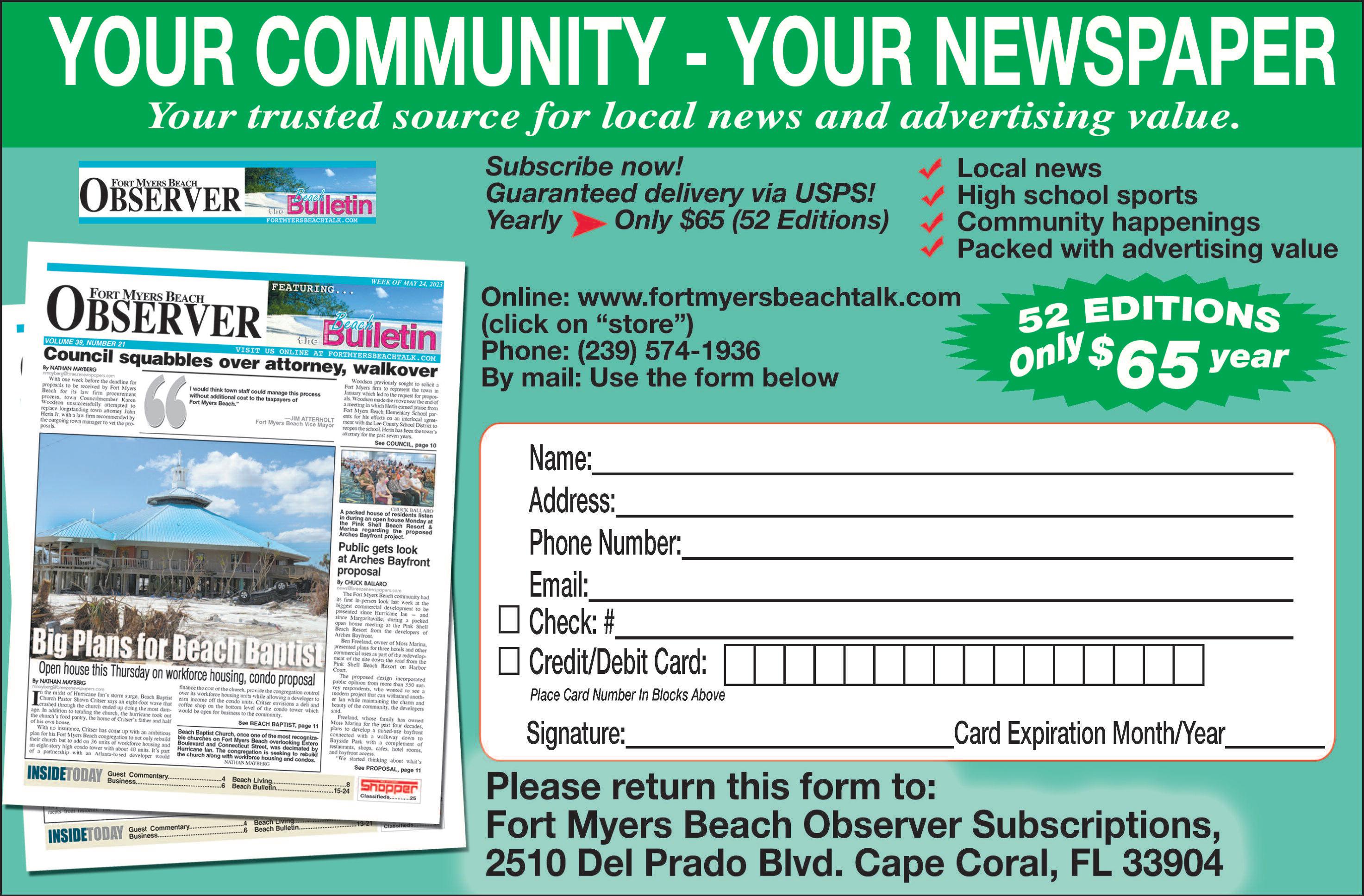 The For t Myers Beach Obser ver & Beach Bulletin welcomes news from our community!