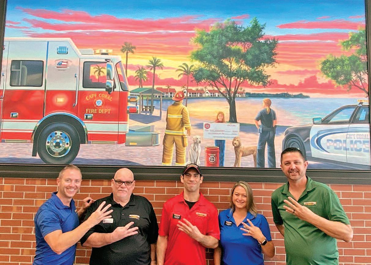 About 50 vehicles are slated to show up Among them will be a Southern Wheel monster truck a Cape Coral police vehicle an Ajax Paving asphalt roller and dump truck the ABC Pest fire truck a Cape Coral Water Reclamation crane and pump, a Cape Coral Fire Department fire engine with a ladder, and a Lee County Electric Cooperative bucket truck