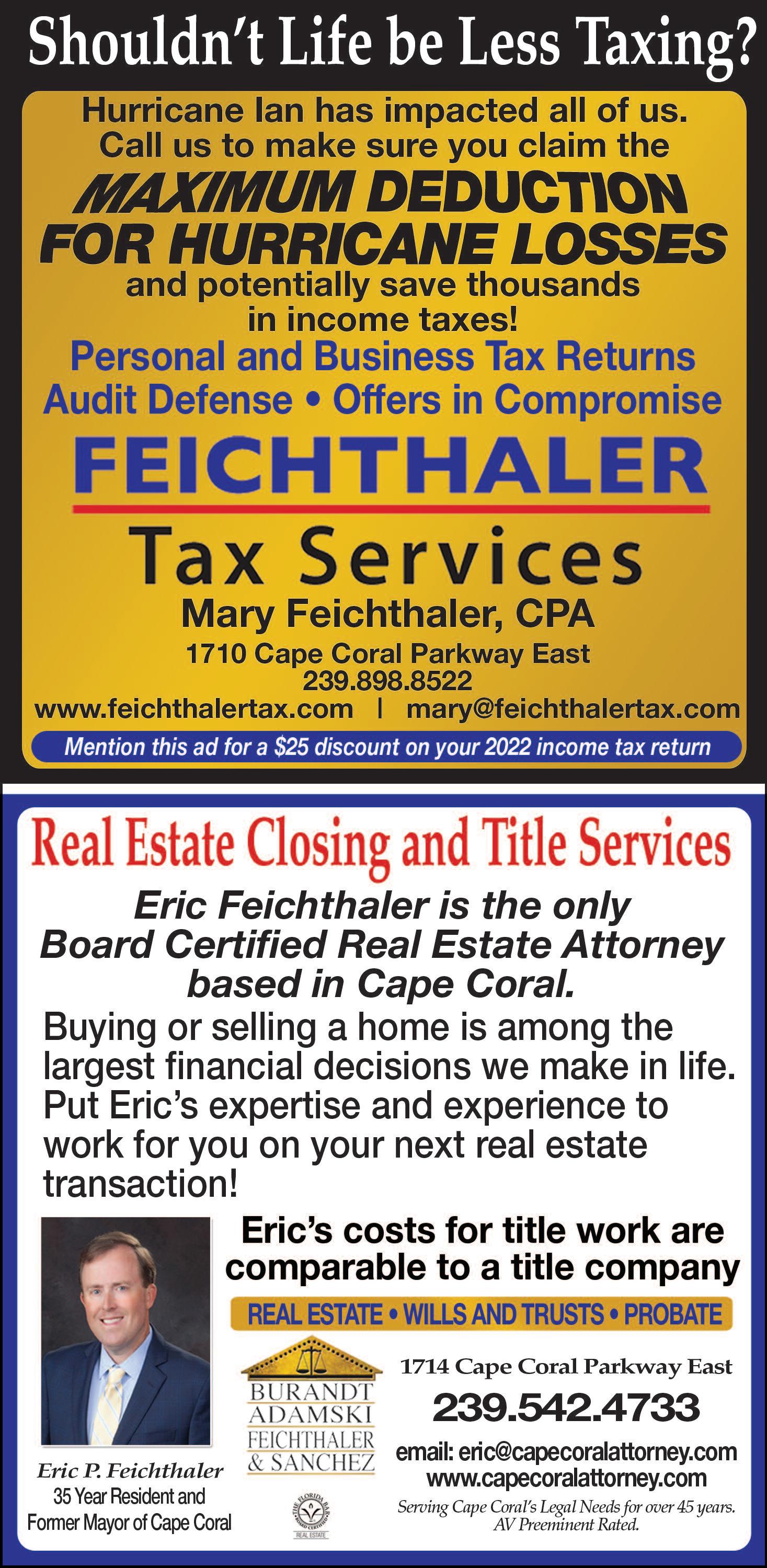 The Lee County Property Appraiser's Office recently reminded property owners that the deadline to apply for 2022 Hurricane Ian Property Tax Refunds is Monday April 3