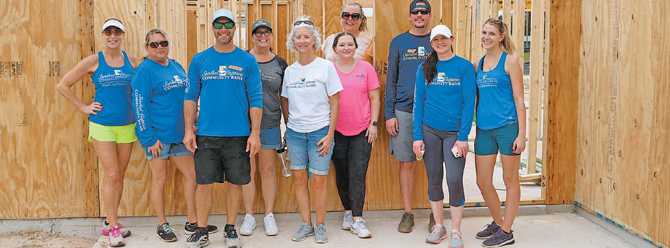 Sixteen employees from Sanibel Captiva C o m m u n i t y B a n k a n d N o r - T e c h B o a t s r e c e n t l y v o l u n t e e r e d w i t h H a b i t a t f o r Humanity Lee and Hendry Counties to raise t h e w a l l s o n a n e w h o m e i n M c N e i l l Village. Habitat’s newest HOA neighborhood in North Fort Myers, it spans 10 acres and will have 36 single-family homes Construction is underway, with the first homes to be completed this summer