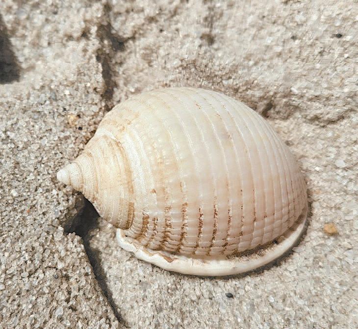J enny H ornacek, of M i d d l e b u r y , I n d i a n a , f o u n d a j u n o n i a o n March 25 at South Seas o n C a p t i v a K a y E n g e l b r e c h t r e p o r t e d that her daughter-in-law has been searching for one every year since her first trip to the island in 2015 Hornacek immediately called her husband, PJ Hornacek, back at the condo to let him k n o w a b o u t h e r g r e a t find! To report a shell find, contact 239-4721 5 8 7 o r t r e p e c k i @ breezenewspapers com