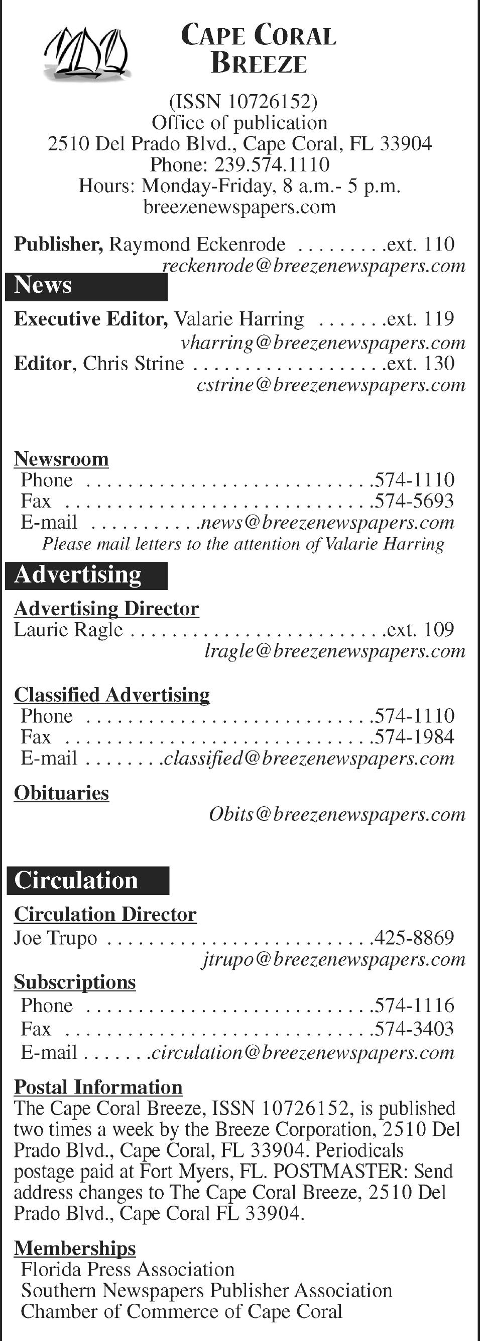 Cape Coral Breeze Vol. 6 3 , No. 2 8 C a p e C o r a l B r e e z e w w w . c a p e c o r a l b r e e z e . c o m A p r i l 5 , 2 0 2 4 n P a g e 2