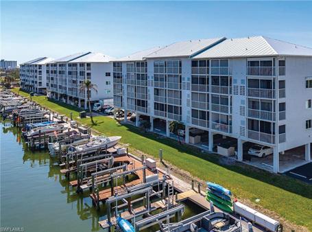 PRIVATE GARAGE INCLUDED to keep your vehicle secure. 2nd Floor condo is located just 10 minutes from Ft. Myers, Ft. Myers Beach & Sanibel. Breakfast bar & dining nook. Floors are tiled & carpeted. Window shutters. 2BD/2 ensuite BAs. The open plan living & dining area is great for entertaining. Bonus den area. Gated community has clubhouse w/fitness room, resort style pool + hot tub. Furnished. $289,000