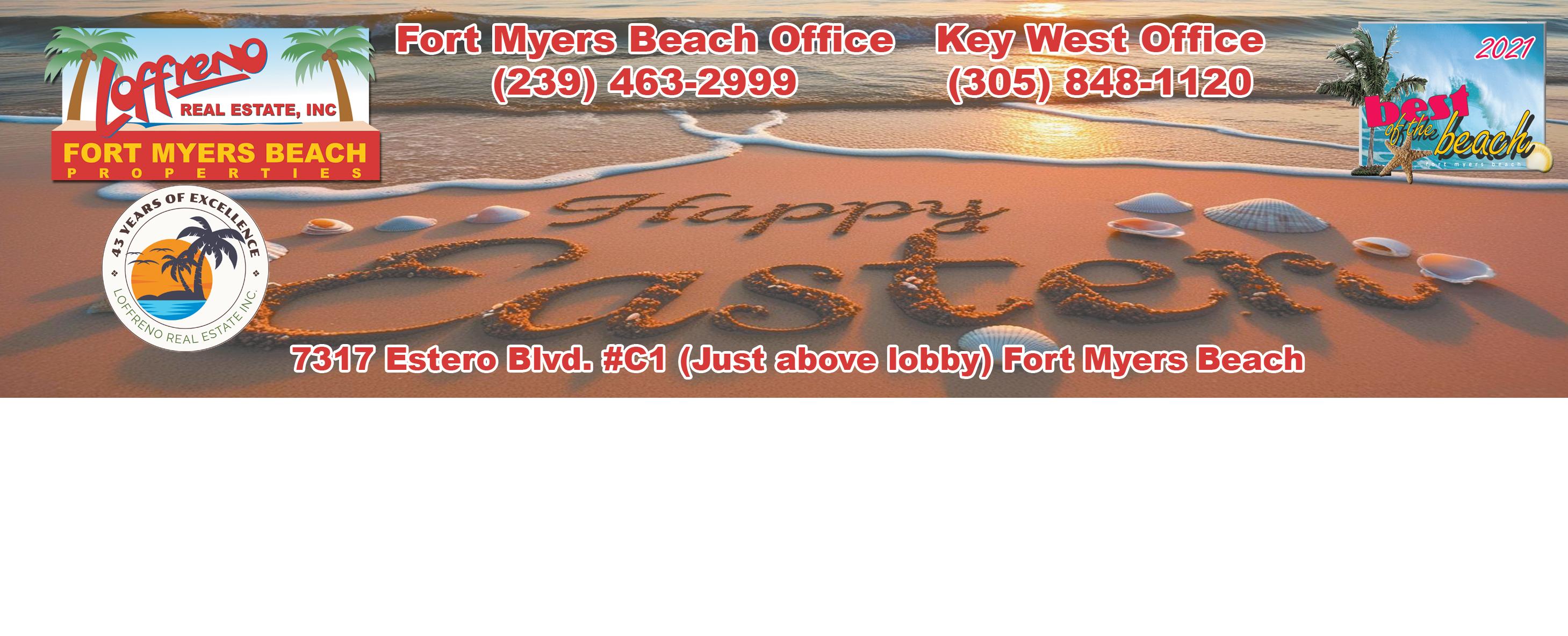 BY THIS SATURDAY to see the 1- & 2-bedroom units that are on offer at Windward Point Condominium. All units have two baths. The large pool provides a panoramic view of the Bay as you swim. Located on the tranquil south end of the island, with convenient access to the mainland via Big Carlos Pass. #308 11:00-12PM; #408 NOON-1PM; #604 1-2PM. 400 Lenell Rd. $329,000 to $479,900 CORNER LOT ON ESTERO & CONNECTICUT - Prime homesite directly across from the beach! This spacious lot is across the street from a wide beach access & parking corridor, giving this property the advantage of more Gulf views. Captures views of the Gulf & beach from your elevated new dream home! Property can be rented weekly. $975,000
