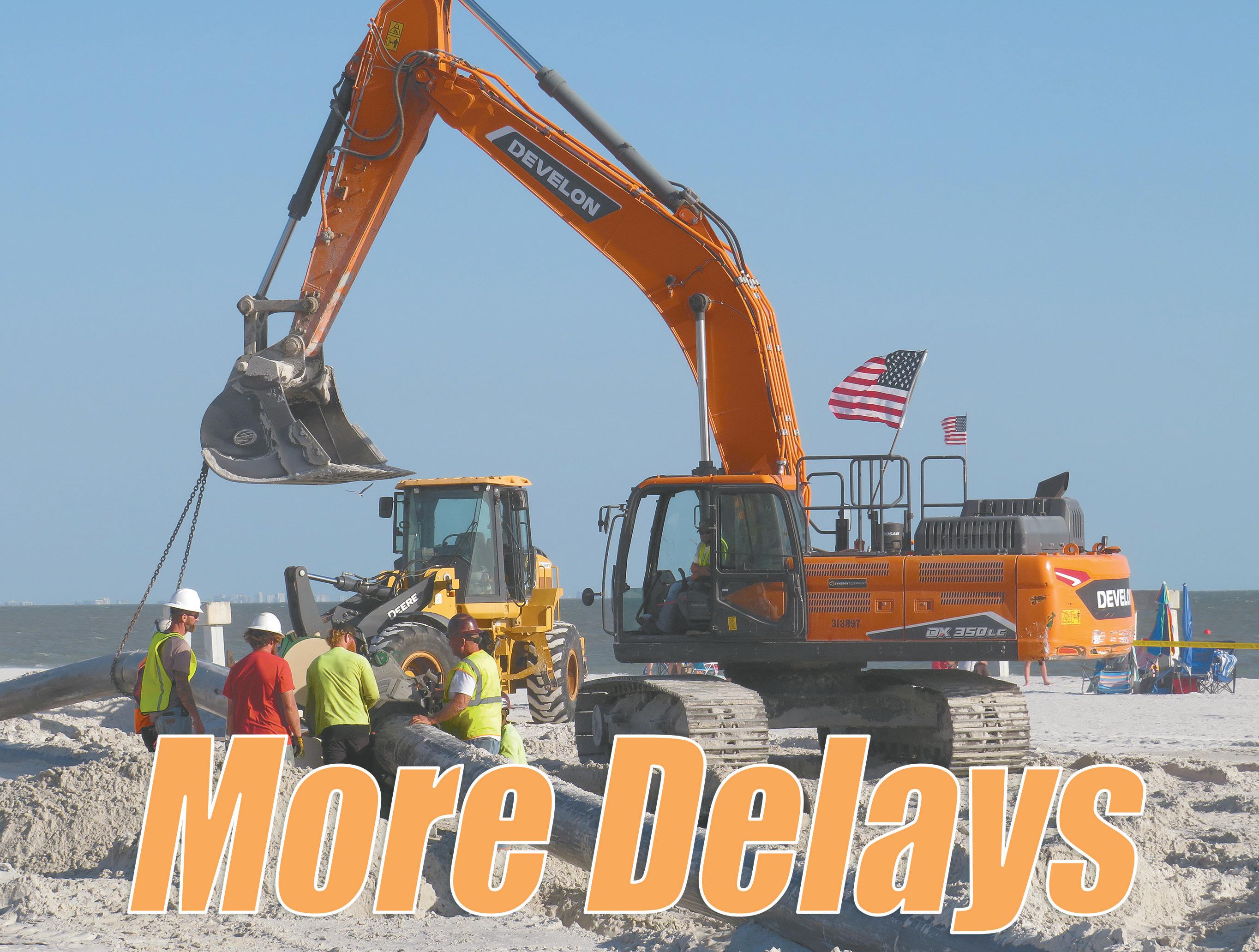 The new delays means that the town’s beach renourishment project, which was supposed to have been completed in January, will now extend into sea turtle nesting season.