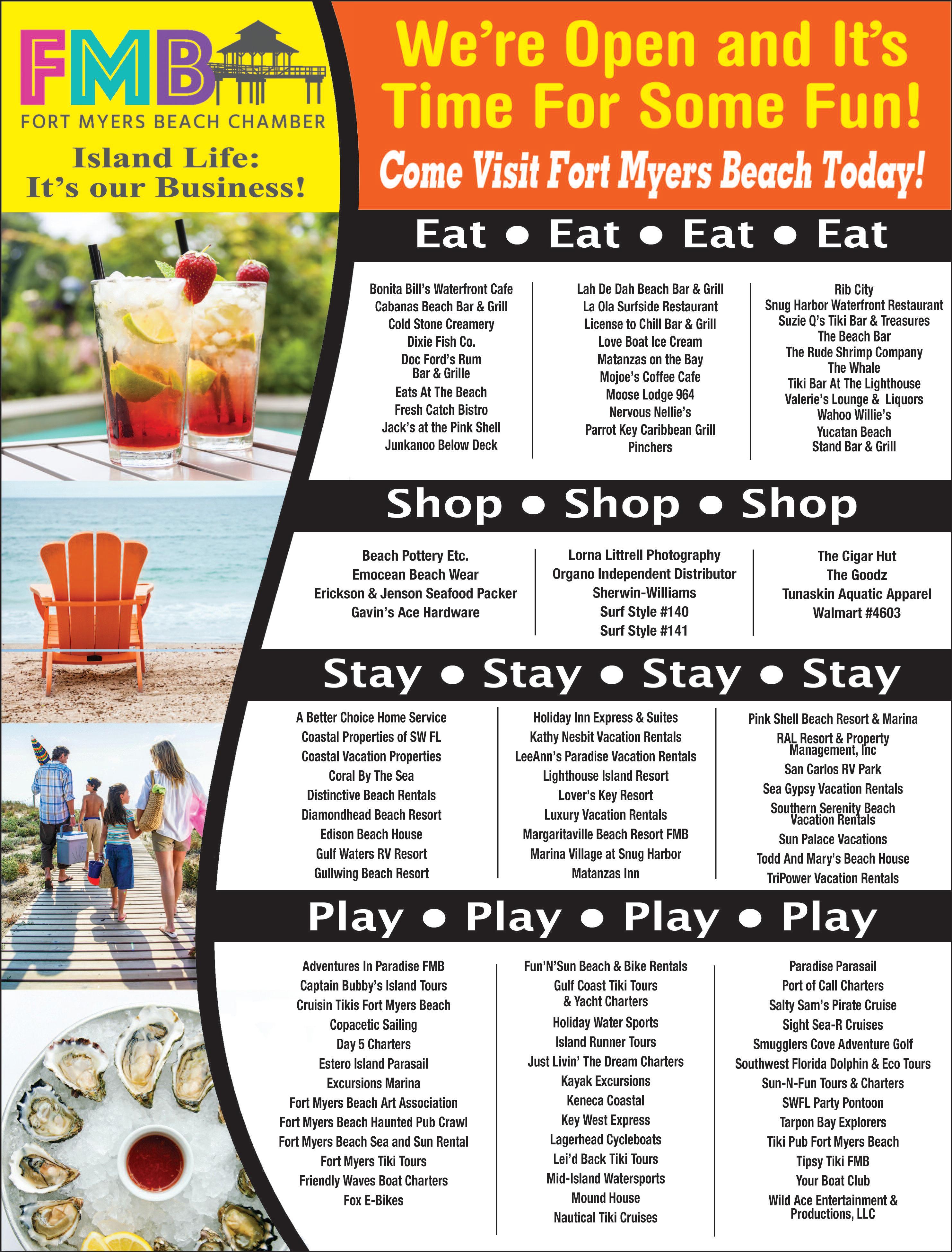 Just a walk on the beach will be a great start to your list as many birds like skimmers, pelicans and cormorants take advantage of the food supply in the gulf waters Notice the plovers, ruddy turnstones, sanderlings, oystercatchers, and willets feeding in the beach wrack brought in by the tide If you are walking early you may see some skimmers flying low above the water Look up and maybe see an osprey catch a fish or a vulture (is it a turkey vulture or a black vulture?) flying overhead Was that an anhinga or a cormorant you saw dive? Look in the beach vegetation and maybe spot a woodpecker, hawks dove, or mockingbird, sparrow or warbler In the shallow surf water or if you find a beach pond there may be a wading bird Is it a heron or an egret? Need help with identification? The FWC website offers on-line sources for identifying birds and butterflies The Audubon Society is another great reference and you also can pick up a bird identification pamphlet when you visit the FMB MERTF pop up tent This Town sponsored tent is a bountiful source of free information It can be found every-other Friday at the FMB Times Square market