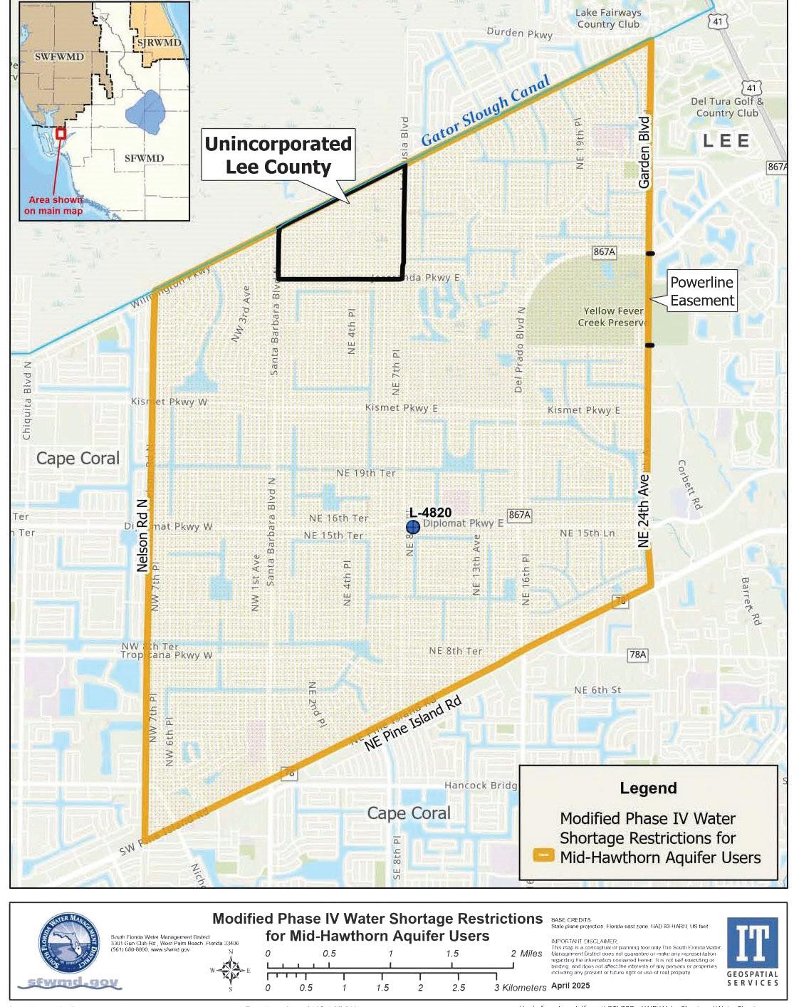 The Water Shortage Order issued by the South Florida Water Management District bans all irrigation system use for private well users in the affected area with limited