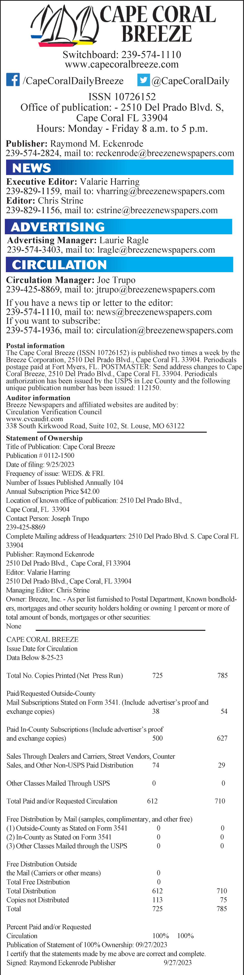 By MEGHAN BRADBURY news@breezenewspapers com Cape Coral High School and Oasis High School seniors will be the first to step across the stage and receive their diplomas as part of the Class of '24