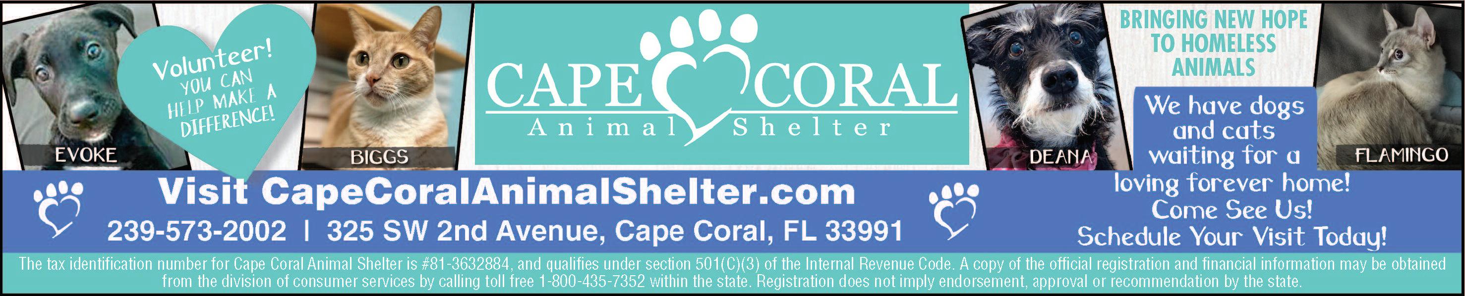 If you are interested in meeting any of the animals available for adoption at The Cape Coral Animal Shelter, visit its website at www.capecoralanimalshelter.com for additional information