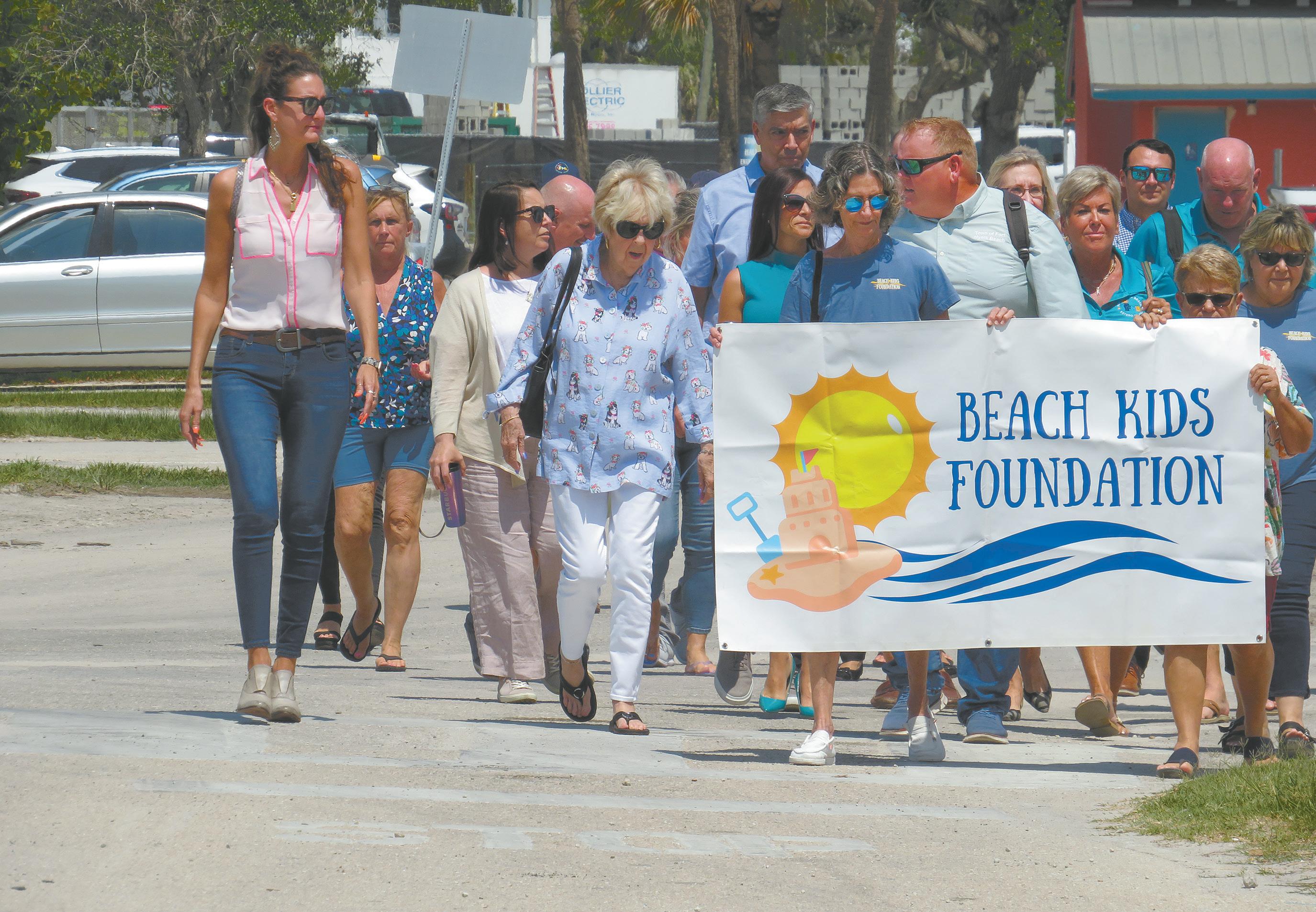 Fort Myers Beach Elementary School parents, Beach Kids Foundation members, town councilmembers, town staff and members of the public walked from the Fort Myers Beach Town Hall to the Fort Myers Beach Elementary School to bring attention to the delays by the Lee County School District in reopening the elementary school since Hurricane Milton.